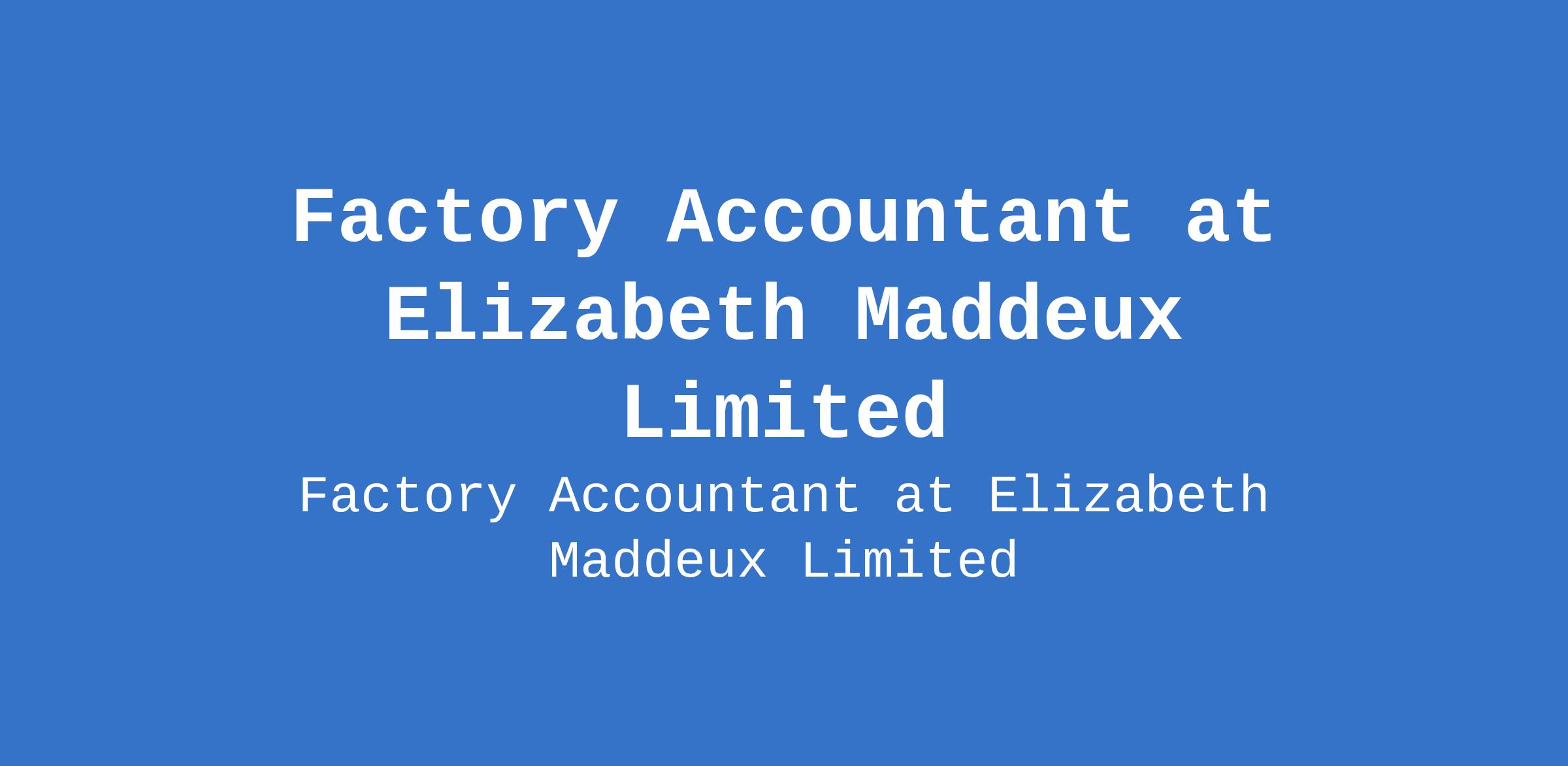 Elizabeth Maddeux Limited is recruiting to fill the position of: Factory Accountant. The position is located in Shagamu, Ogun State. Salary: N250,000 - N350,000 / month. Interested candidates should possess a Bachelors Degree (BSc) in Accounting, Finance, or related fields with 35 years of accounting experience in the FMCG / manufacturing sector.