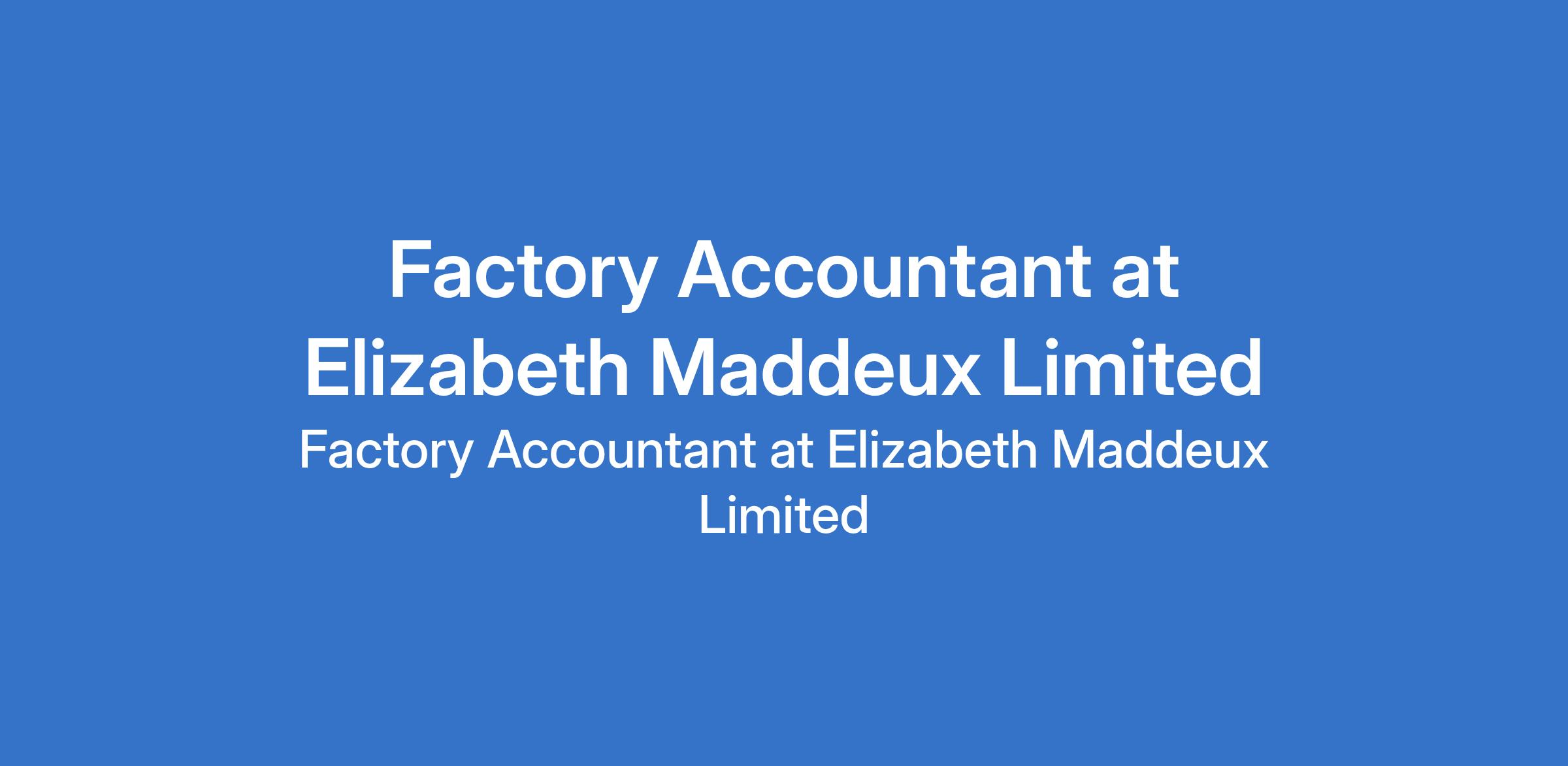 Elizabeth Maddeux Limited is recruiting to fill the position of: Factory Accountant. The position is located in Shagamu, Ogun State. Salary: N250,000 - N350,000 monthly. Interested candidates should possess a Bachelors Degree (BSc) in Accounting, Finance, or related fields with 35 years of accounting experience in the FMCG/manufacturing sector