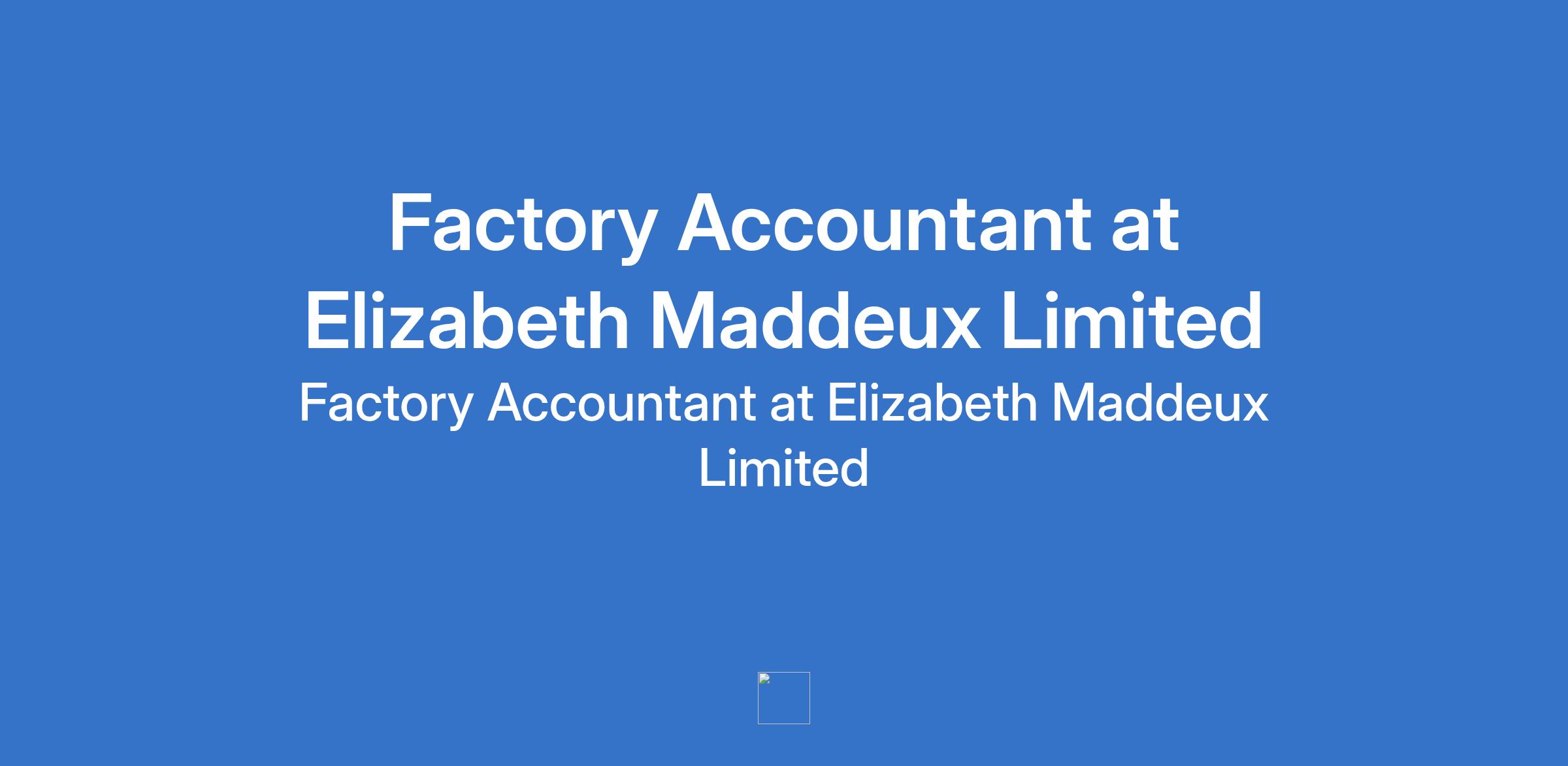 Elizabeth Maddeux Limited is recruiting to fill the position of: Factory Accountant. The position is located in Shagamu, Ogun State. Interested candidates should possess a Bachelors Degree (BSc) in Accounting, Finance, or related fields with 35 years of accounting experience in the FMCG/manufacturing sector is mandatory.