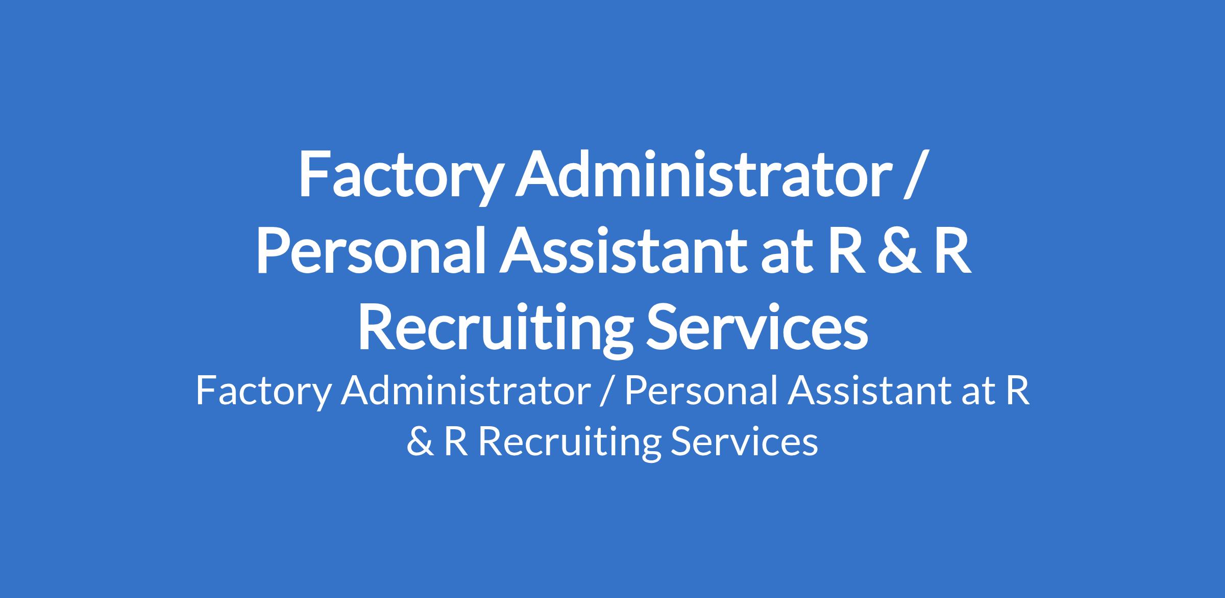 R & R Recruiting Services is recruiting to fill the position of: Factory Administrator / Personal Assistant. The position is located in Akute, Lagos State. Salary: N120,000 - N150,000 per month. Interested candidates should possess an HND or Bachelors Degree in Business Administration, Office Management, Management, or a related field with 1 3 years of experience in an administrative, personal assistant, or operations support role.