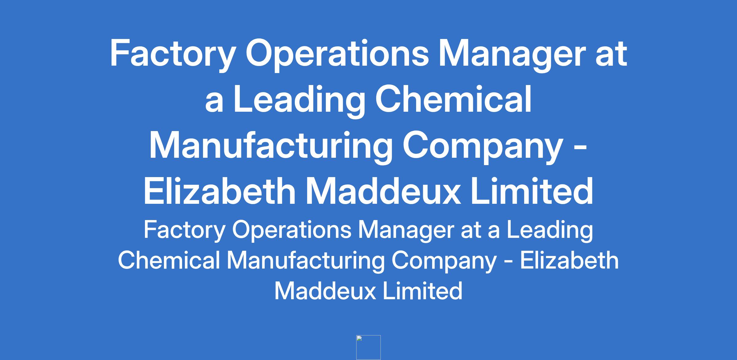 Elizabeth Maddeux Limited - Our client, a leading chemical manufacturing company is recruiting to fill the position of: Factory Operations Manager. The position is located in Shagamu, Ogun State. Salary: N800,000 - N1,000,000 per month. Interested candidates should possess a Bachelors Degree in Engineering, Industrial Management, or Operations (MBA preferred) with 810 years of experience in factory or plant management, preferably in manufacturing or construction industries.