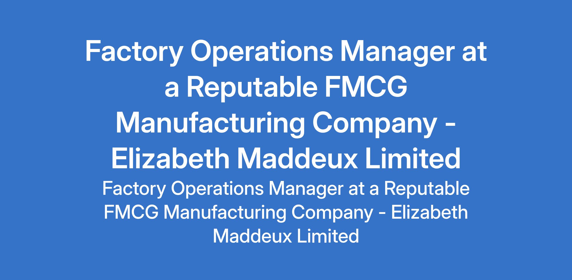 Elizabeth Maddeux Limited - Our client, a reputable FMCG manufacturing company is recruiting to fill the position of: Factory Operations Manager. The position is located in Abuja (FCT). Salary: N700,000 - N800,000 monthly. Interested candidates should possess a Bachelors degree in Microbiology, Biochemistry, Food Science & Technology, Chemical Engineering or related field with a minimum of 7 years manufacturing experience, preferably in FMCG and at least 35 years in an operations, factory, or production management leadership role.