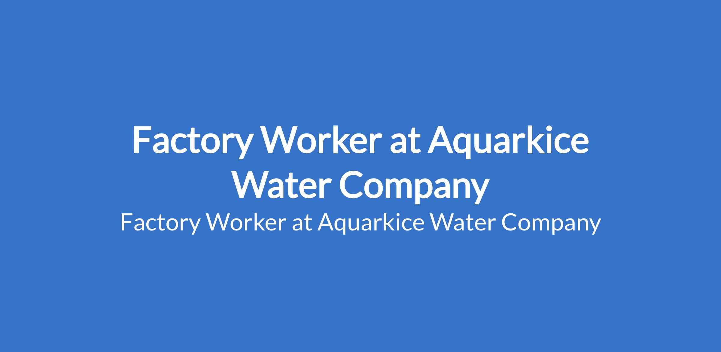 Factory Worker at Aquarkice Water Company