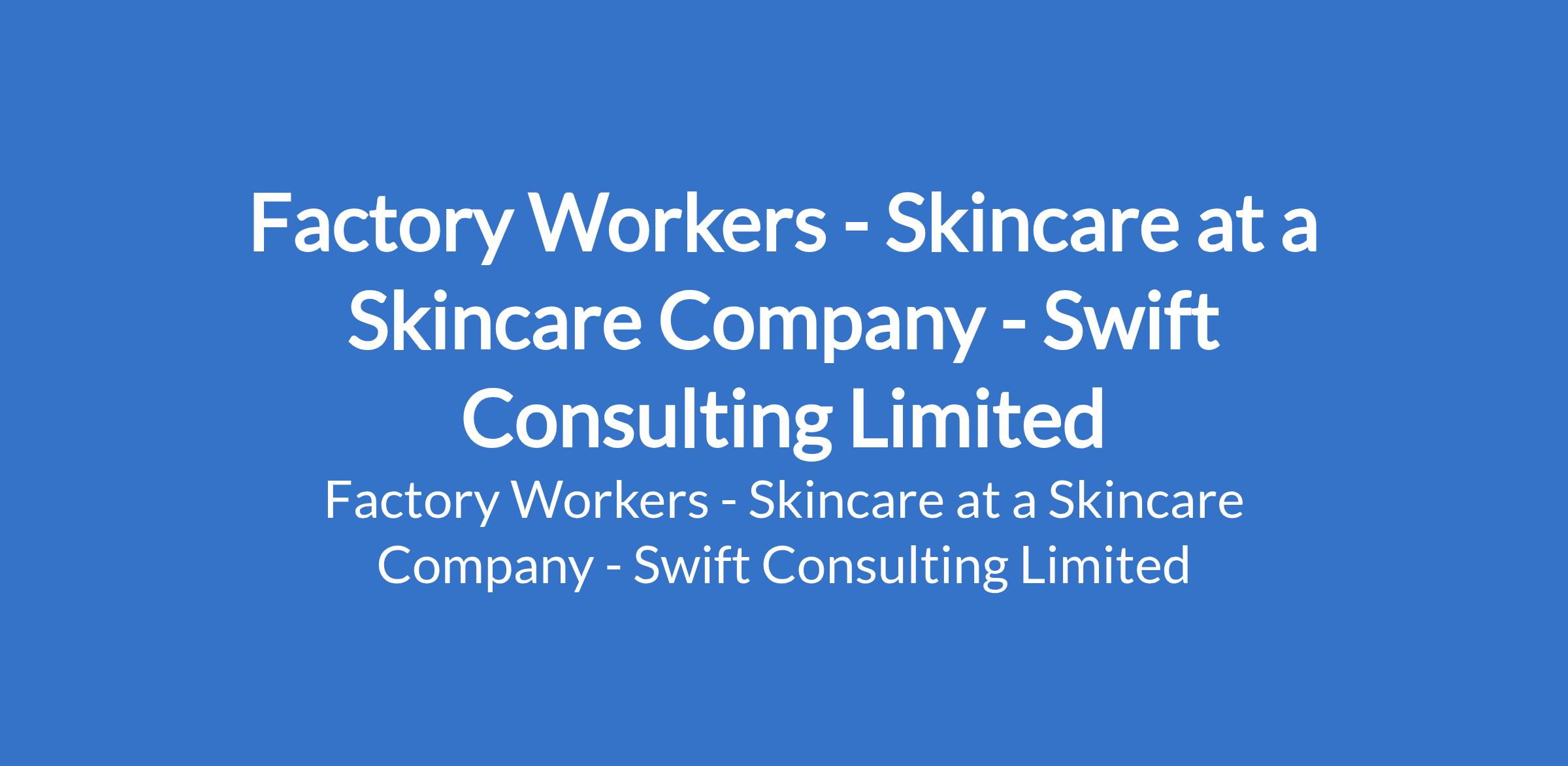 Swift Consulting Limited - Our client, a reputable Skincare Firm is recruiting to fill the position of: Factory Worker - Skincare. The position is located in Lagos State. Interested candidates should possess a Bachelor's Degree or diploma in Chemistry, Biochemistry, Cosmetic Science, or a related field (preferred) with 23 years experience in skincare, cosmetics, or beauty product manufacturing.