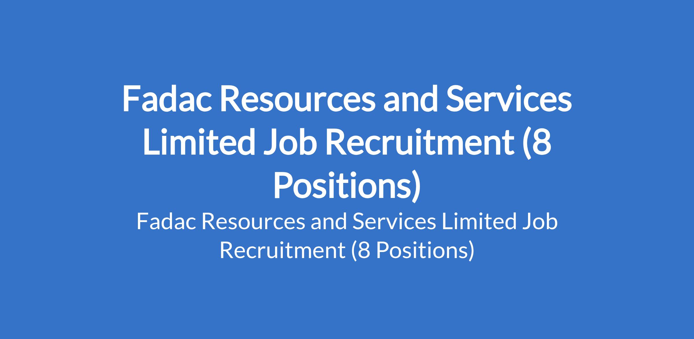 Fadac Resources and Services Limited - Our clients in various sectors are recruiting suitably qualified candidates to fill the following positions in Lagos, Nasarawa, and Cross River States: Head, Projects and Asset Management; Investment & Fund Mobilization Manager; PR / Corporate Communications Executive; Senior Accountant; Head of Marketing; Business Development Executive; University Bursar; and Financial Controller.