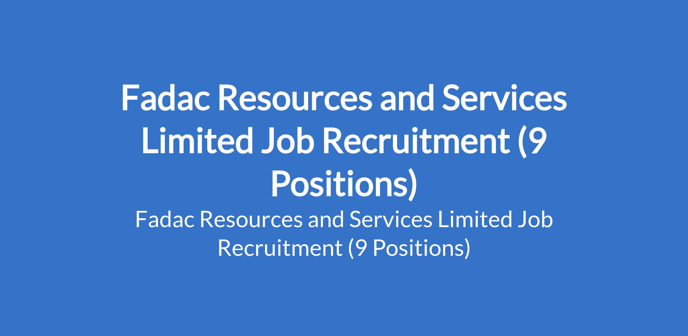 Fadac Resources and Services Limited - Our clients in various sectors are recruiting suitably qualified candidates to fill the following positions in Abuja (FCT), Nasarawa, Rivers, Kano, Oyo and Lagos States: Haulage Service Manager, HR Assistant; Channel Sales Executive; Sales Executive (Solar); Business Development Executive; Lead - Public Relations, Marketing and Media; Client Advisor / Relationship Manager, Wealth Management; Sales Manager; and Retail Showroom Manager.