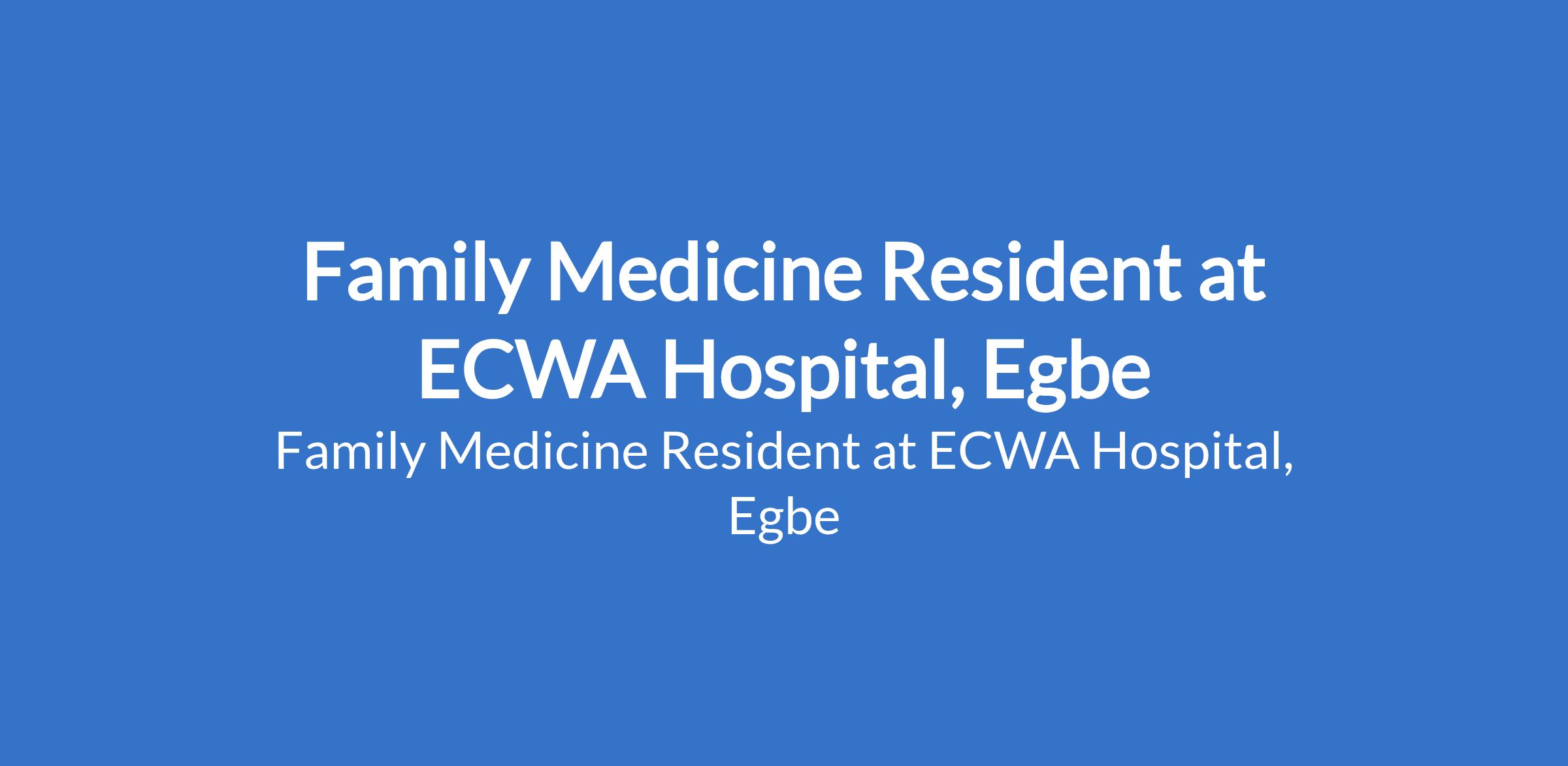 Family Medicine Resident at ECWA Hospital, Egbe
