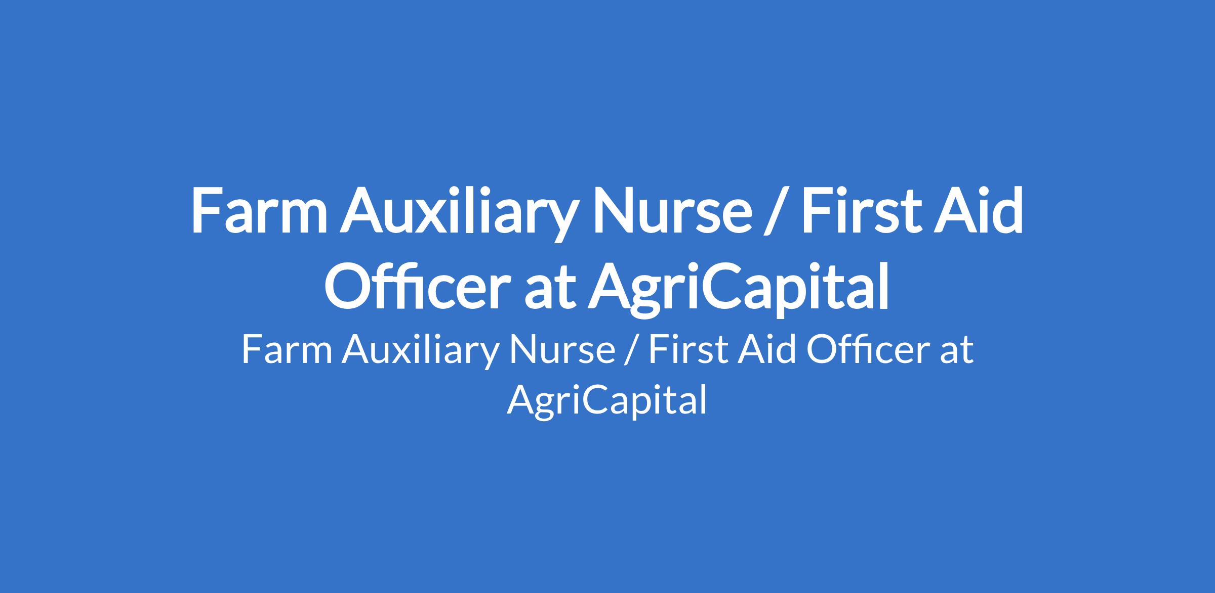 AgriCapital is recruiting to fill the position of: Farm Auxiliary Nurse / First Aid Officer. The position is located in Abeokuta, Aiyetoro - Ogun State. Interested candidates should possess a certificate in Nursing, Community Health, or First Aid with experience in emergency or basic medical care.