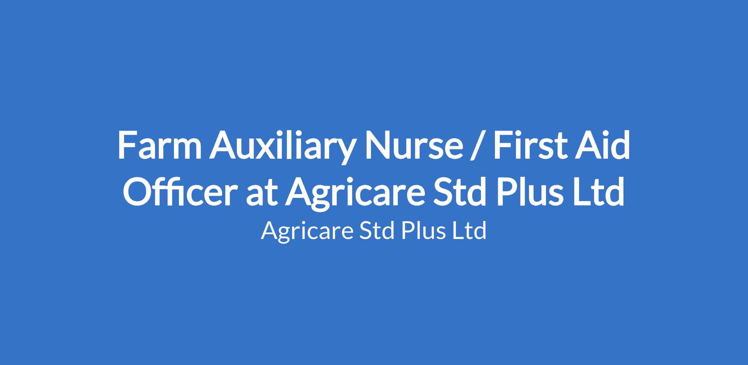 The Farm Auxiliary Nurse / First Aid Officer is responsible for providing first aid and basic healthcare support to farm workers, promoting workplace safety, and responding to minor medical incidents within the farm settlement.