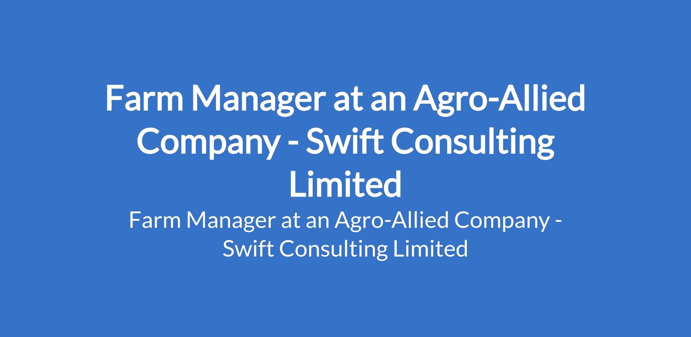 Swift Consulting Limited is recruiting to fill the position of: Farm Manager. The position is located in Accra, Ghana. Interested candidates should possess a Bachelors Degree / HND in Agriculture, Animal Science, or related field with 35 years experience managing a poultry farm (layers or broilers).