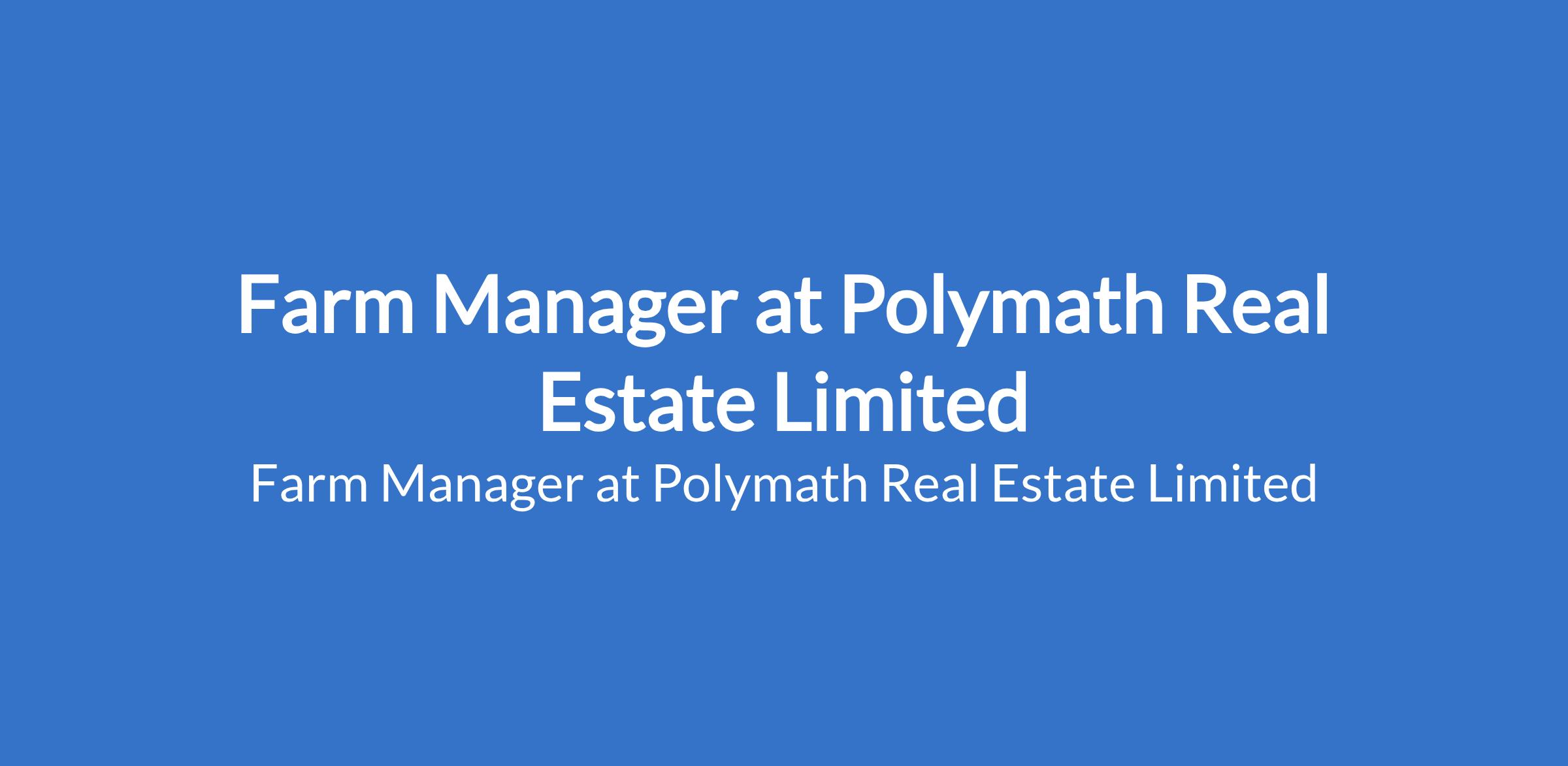 Polymath Real Estate Limited is recruiting to fill the position of: Farm Manager. The position is located in Ibeju Lekki, Lagos State. Interested candidates should possess a Bachelor's Degree in agriculture, agronomy, or a related field with Proven experience in farm management or agricultural production.