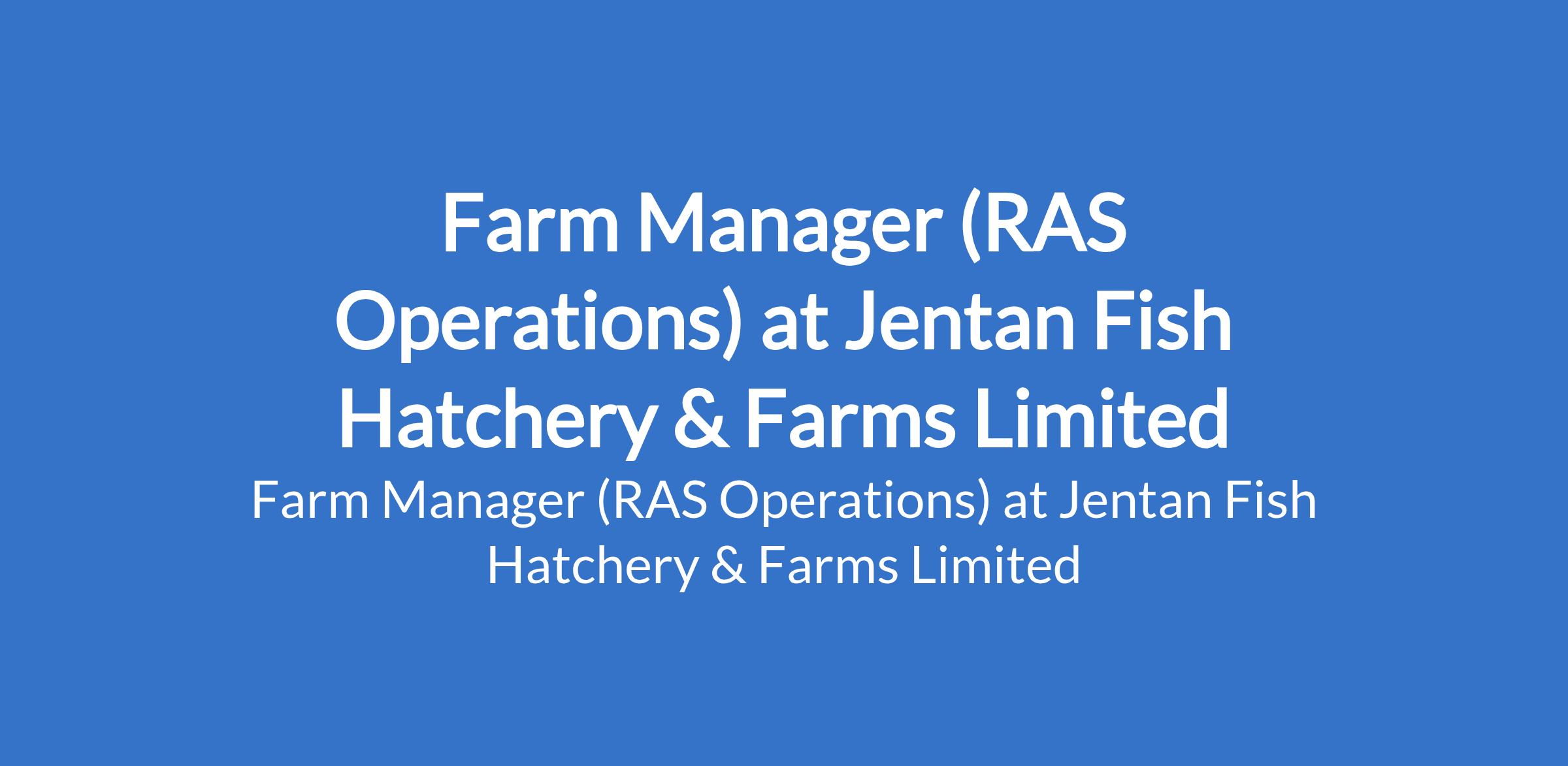 Jentan Fish Hatchery & Farms Limited is recruiting to fill the position of: Farm Manager (RAS Operations). The position is located in Ozubulu, Ekwusigo LGA, Anambra State. Interested candidates should possess a Bachelor's Degree or Diploma in Aquaculture, Fisheries, or related fields with 3-5 years of commercial fish farm management experience required.