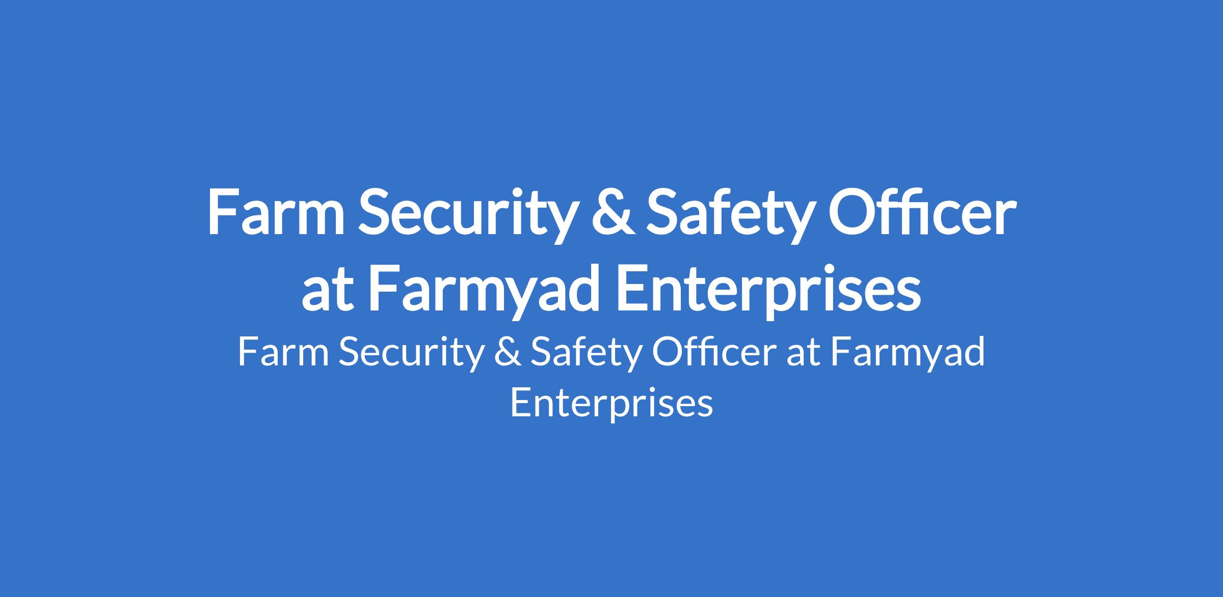 Farmyad Enterprises is recruiting to fill the position of: Farm Security & Safety Officer. The position is located in Ogun State. Salary: N80,000 N120,000 / month. Interested candidates should possess relevant qualifications with prior experience in security or safety roles.
