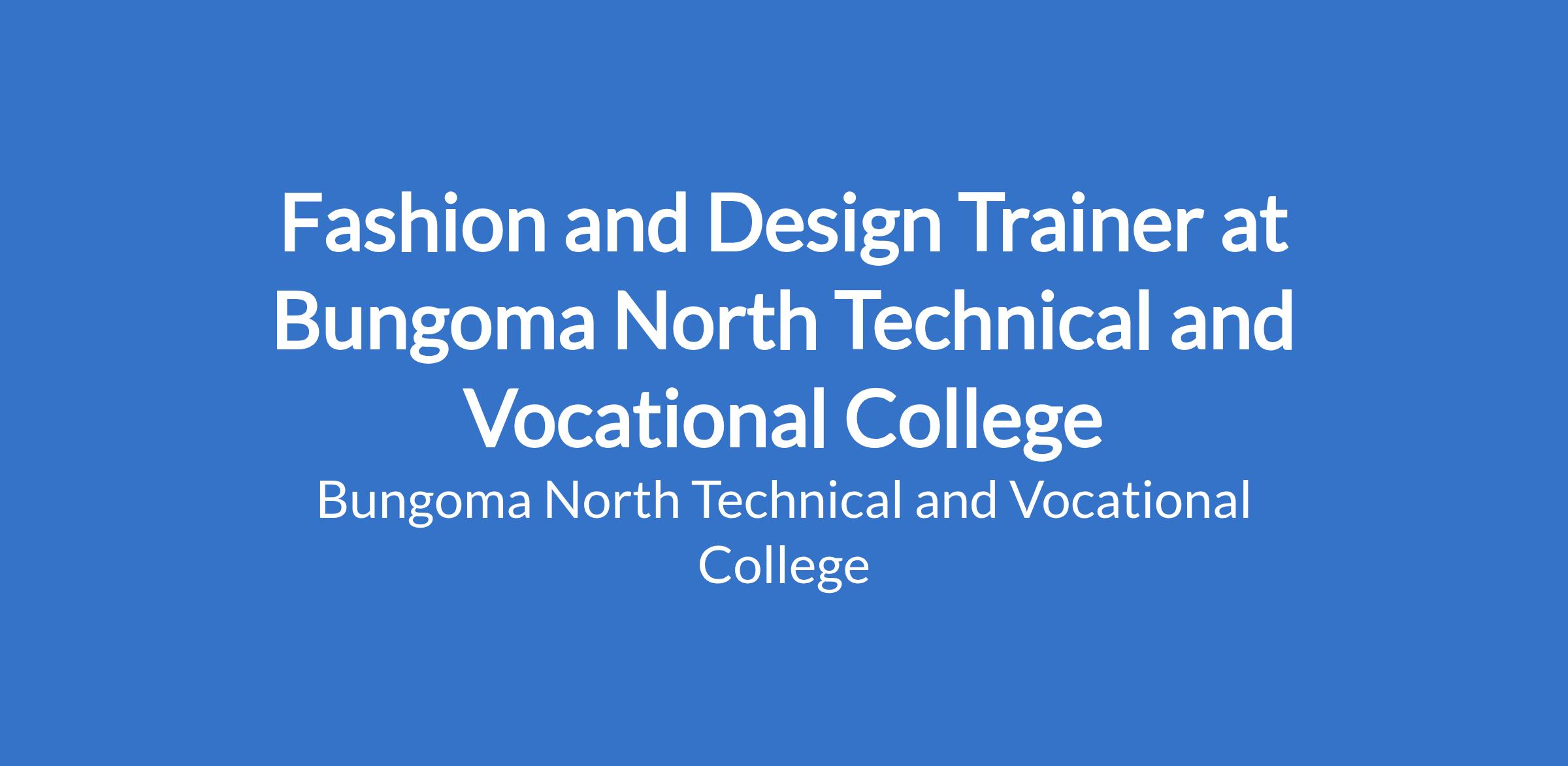 Fashion and Design Trainer at Bungoma North Technical and Vocational College