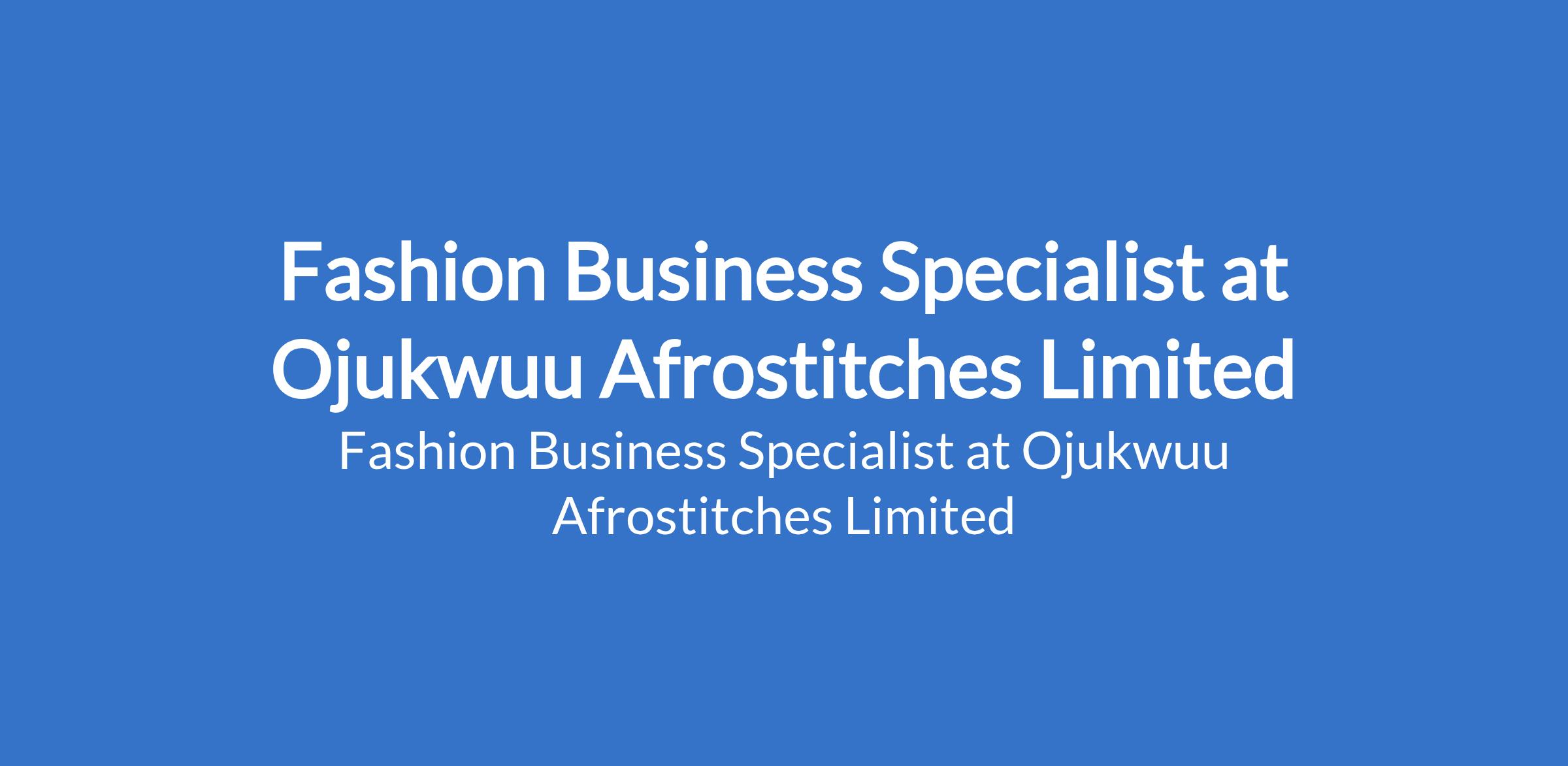 Ojukwuu Afrostitches Limited is recruiting to fill the position of: Fashion Business Specialist. The position is located in Lagos State. Salary: N80,000 - N120,000 monthly. Interested candidates should possess a Bachelors Degree in Business Administration, Marketing, Fashion Management, or related fields with 1 - 3 years experience in fashion, retail, or business strategy roles.