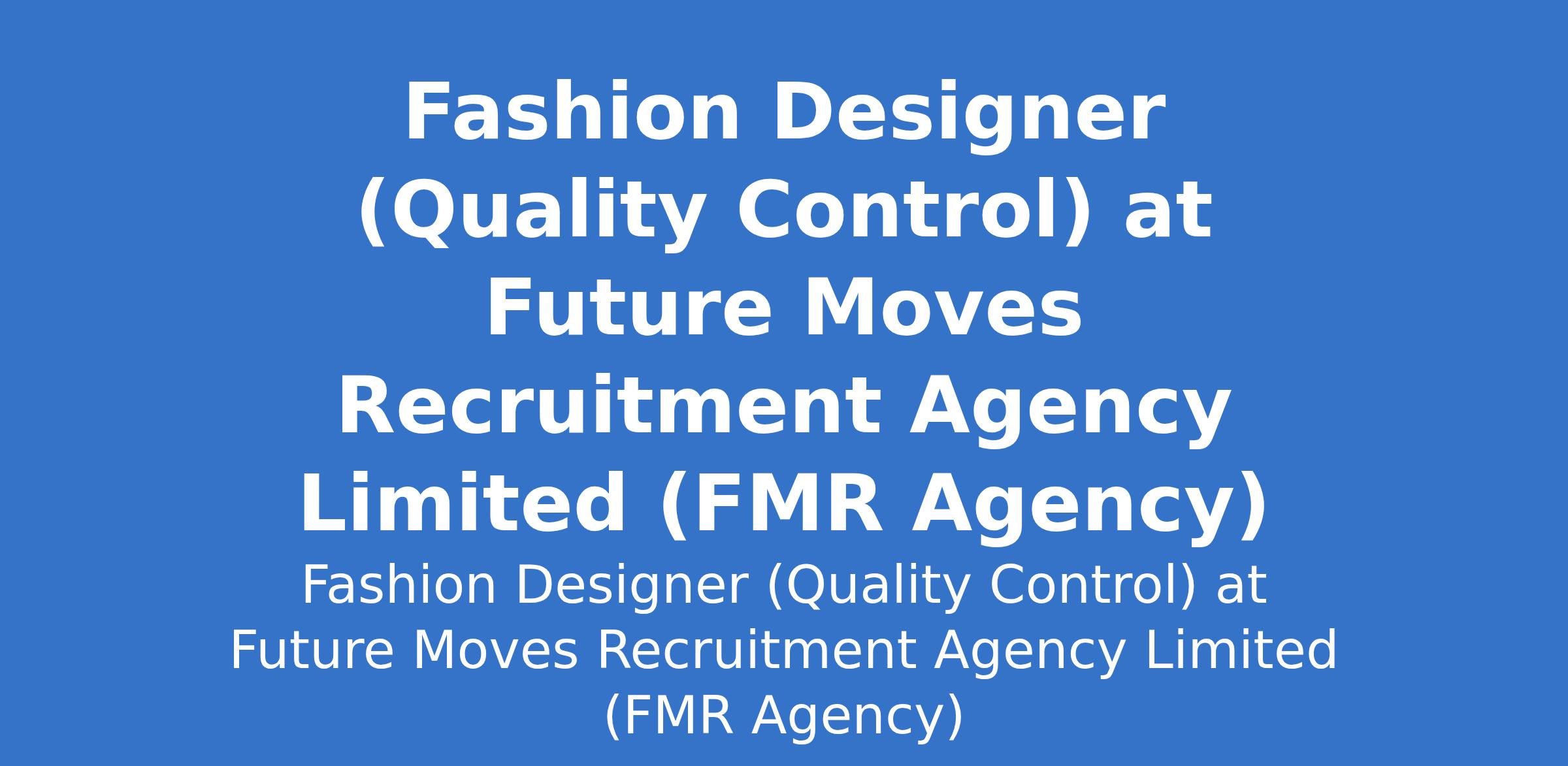 Future Moves Recruitment Agency Limited (FMR Agency) is recruiting to fill the position of: Fashion Designer (Quality Control). The position is located in Surulere, Lagos State. Salary: N200,000 - N250,000 per month. Interested candidates should possess minimum of an OND / HND / BSc in any discipline with proven experience designing and producing mens suits and traditional attire and must be a male candidate with strong hands-on experience in fashion design (menswear).