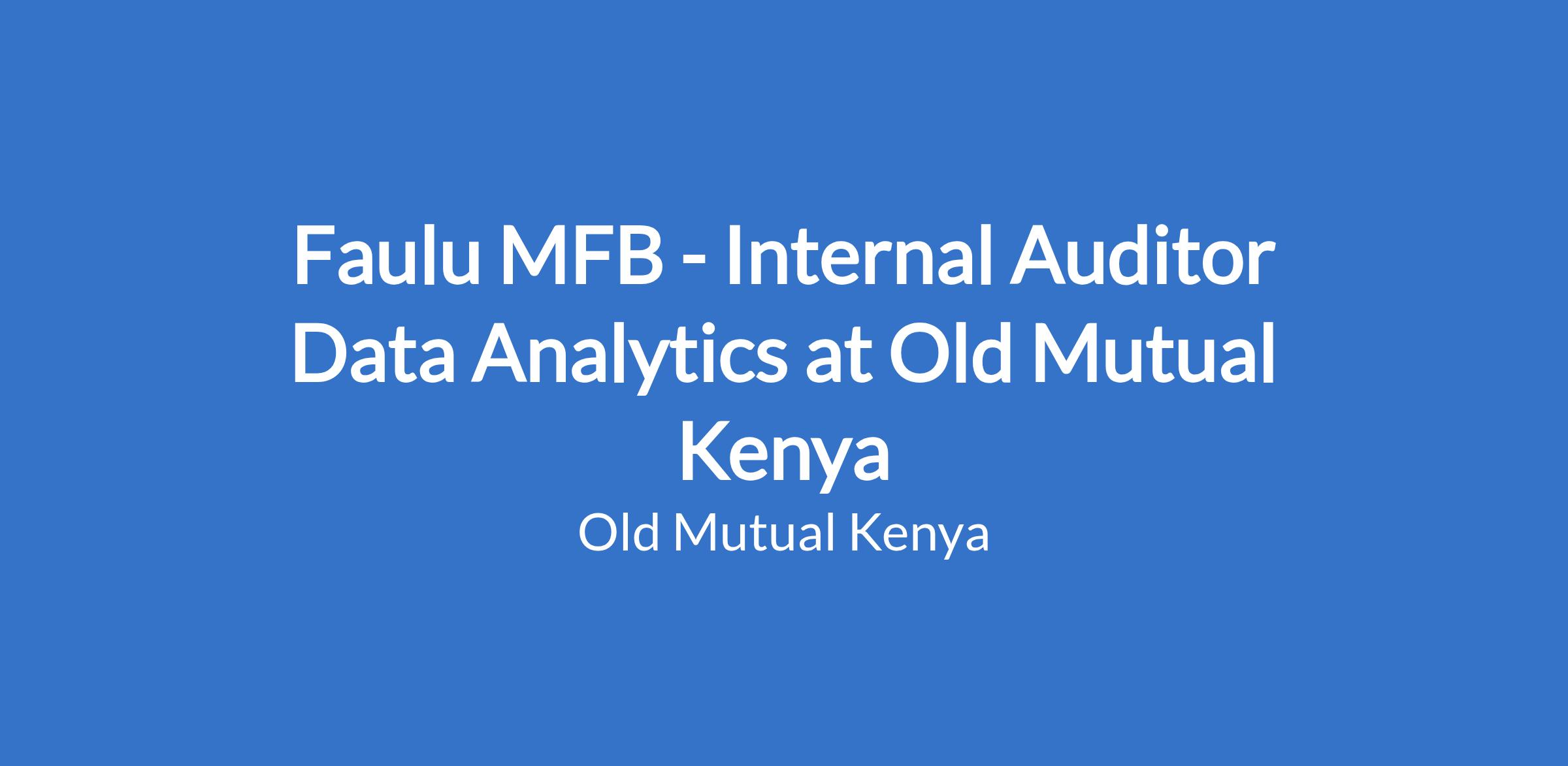 Faulu MFB - Internal Auditor Data Analytics at Old Mutual Kenya