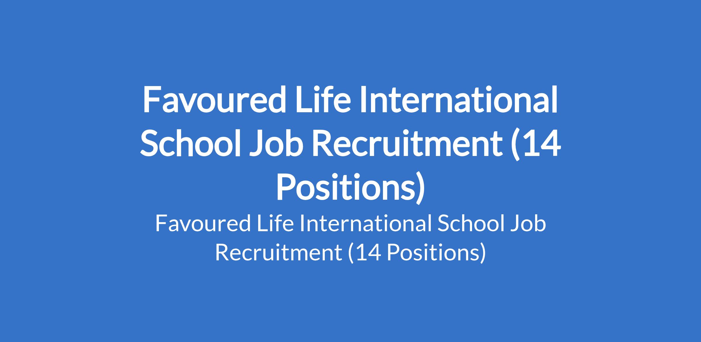 Favoured Life International School is recruiting suitable candidates to fill the following positions in Lagos State: Support Officer, Secretary, Secretary / Receptionist, Cook / Steward, School Nurse, Front Desk Officer / Receptionist, Security Officer, Music Teacher, Marketer / Social Media Expert, Housemaster / Mistress, Accountant / Admin Manager, College Class / Subject Teacher, Head Teacher, and Administrator / Principal / Head Teacher.