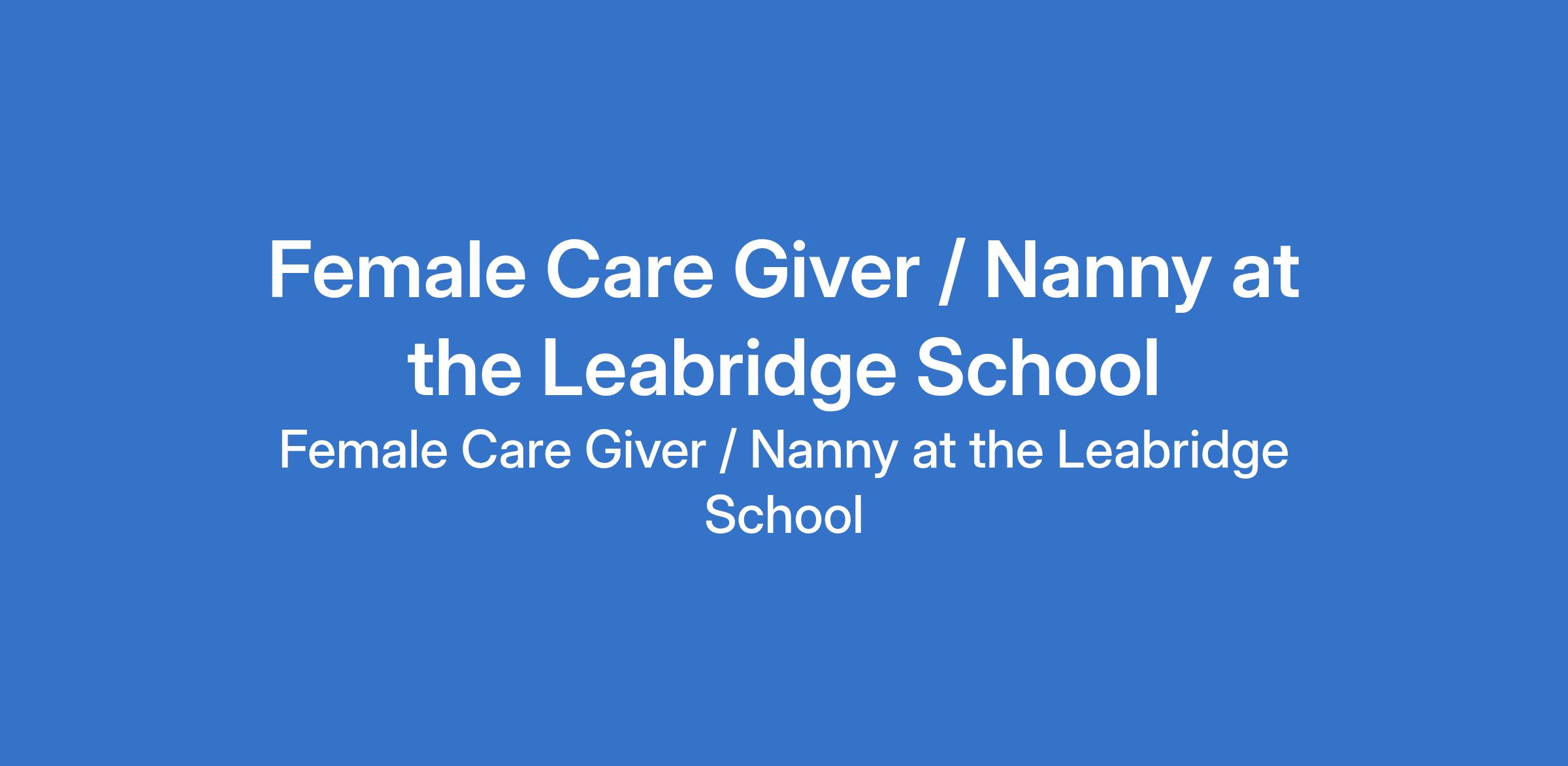 The Leabridge School is recruiting to fill the position of: Female Care Giver / Nanny. The position is located in Ikeja, Lagos State. Interested candidates should possess a minimum of OND with a minimum of 1 year experience working as a nanny or child minder, and must live in or around Ikeja (Ikeja applicants only).