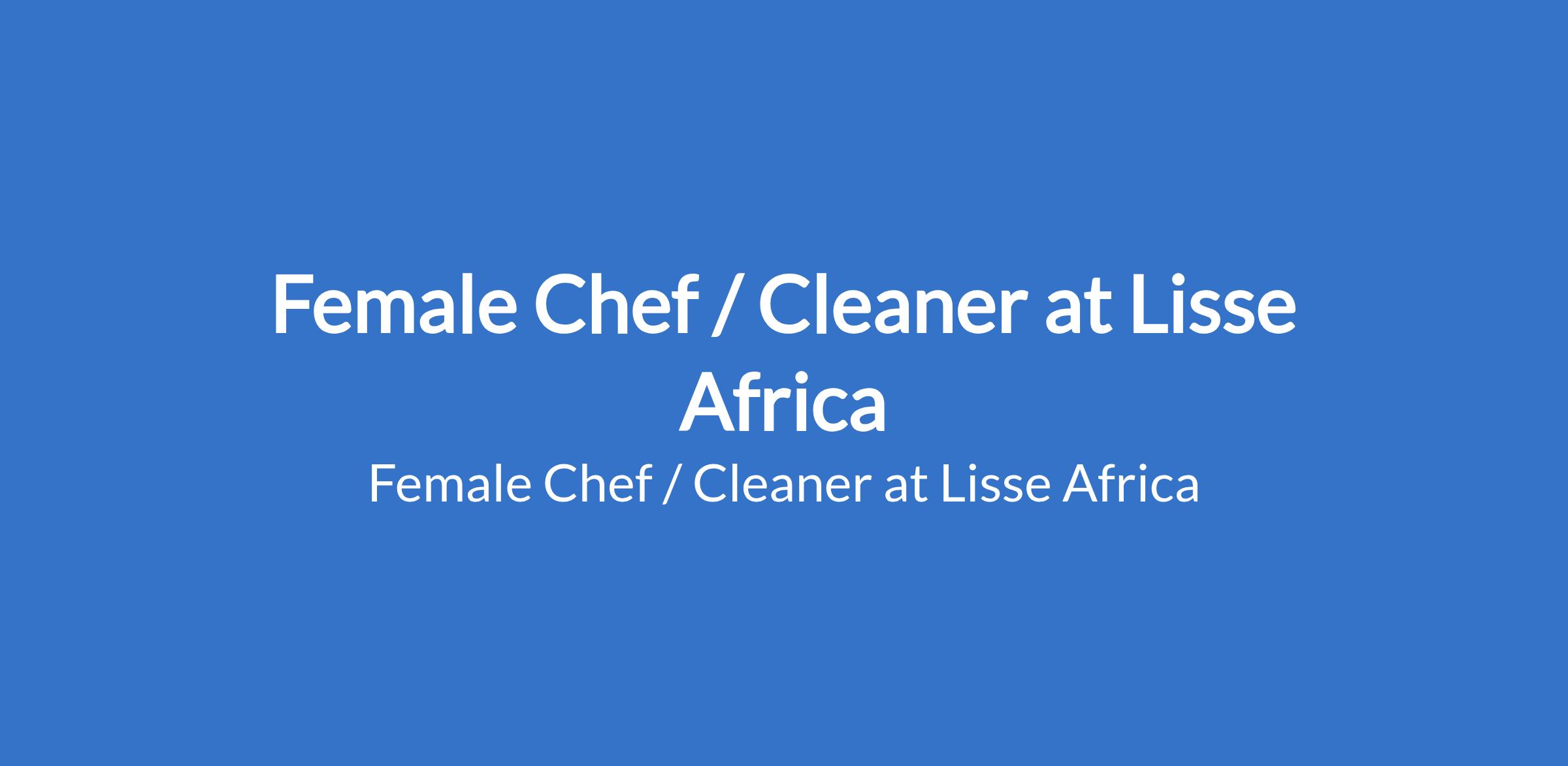 Female Chef / Cleaner at Lisse Africa