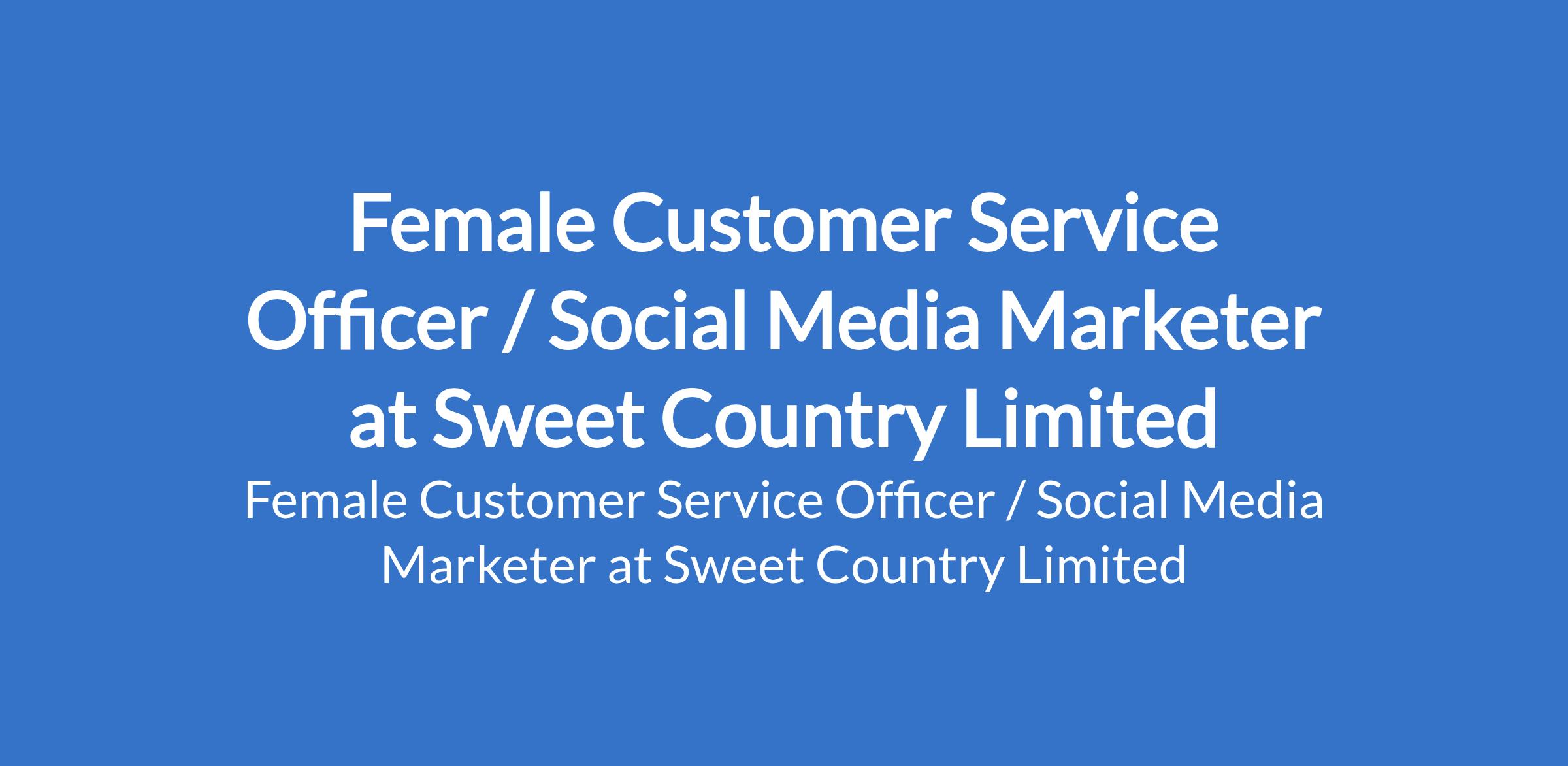 Sweet Country Limited is recruiting to fill the position of: Female Customer Service Officer / Social Media Marketer. The position is located in Ajah, Lagos State. Interested candidates should possess a Bachelor's Degree with 1 year of experience in Marketing, although we will train you adequately.