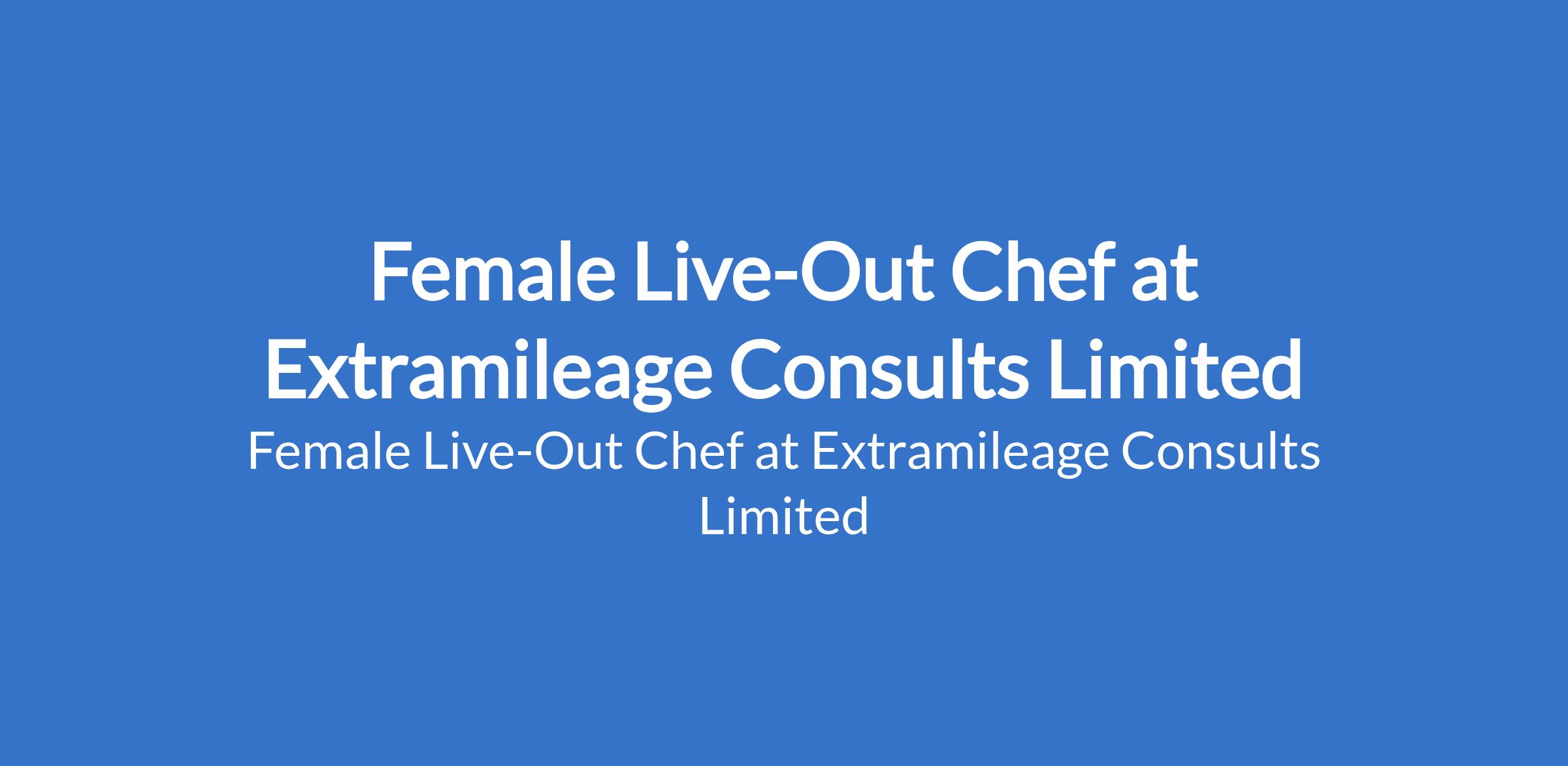 Extramileage Consults Limited is recruiting to fill the position of: Female Live-Out Chef. The position is located in Magodo, Lagos State. Salary: N150,000 / month. Interested candidates should possess relevant qualifications.