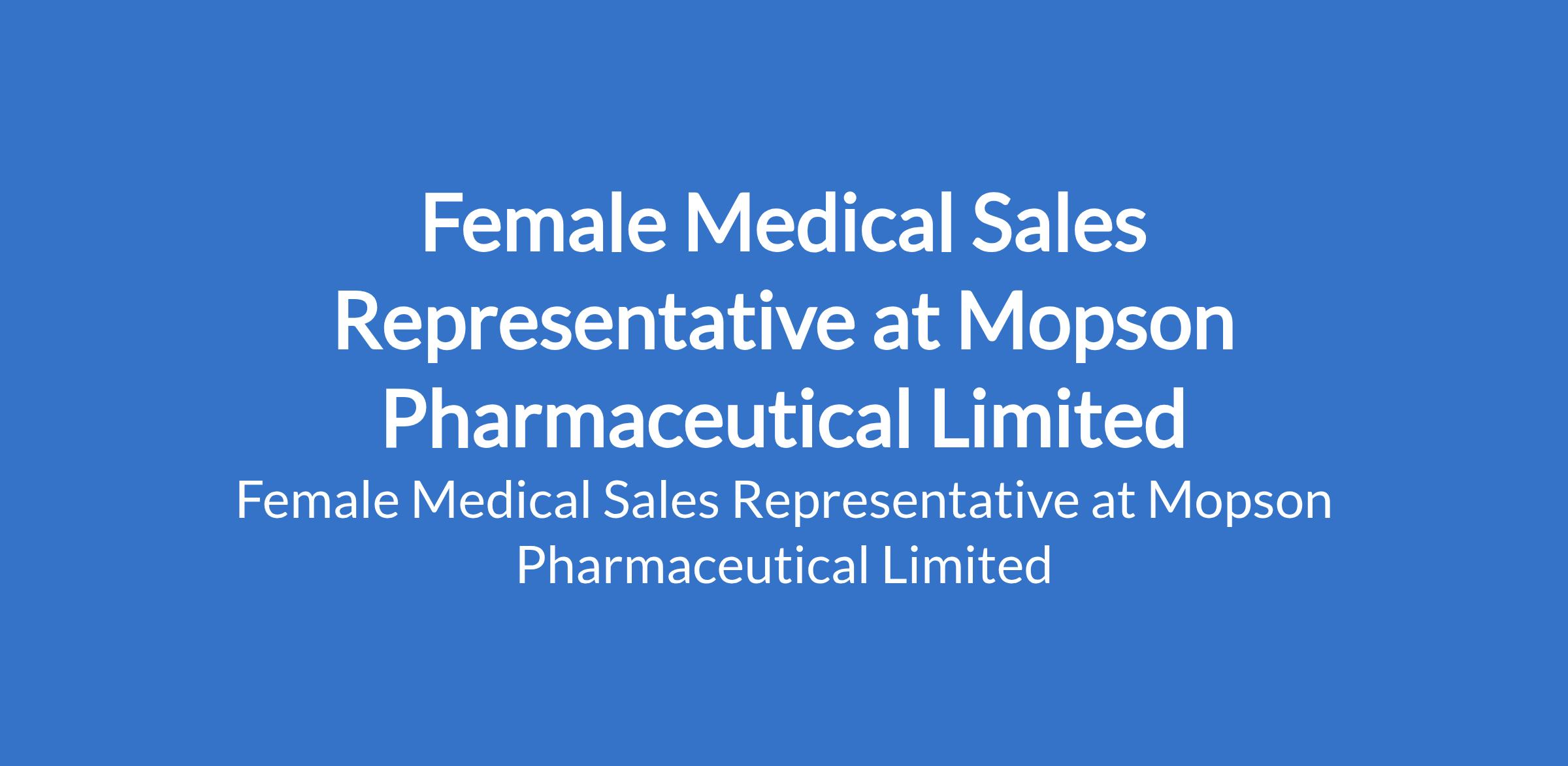 Mopson Pharmaceutical Limited is recruiting to fill the position of: Female Medical Sales Representative. The position is located in Lagos State. Interested candidates should possess a Bachelor's Degree in Business, Marketing, Life Sciences, or related field with 0 - 3 years of relevant experience.