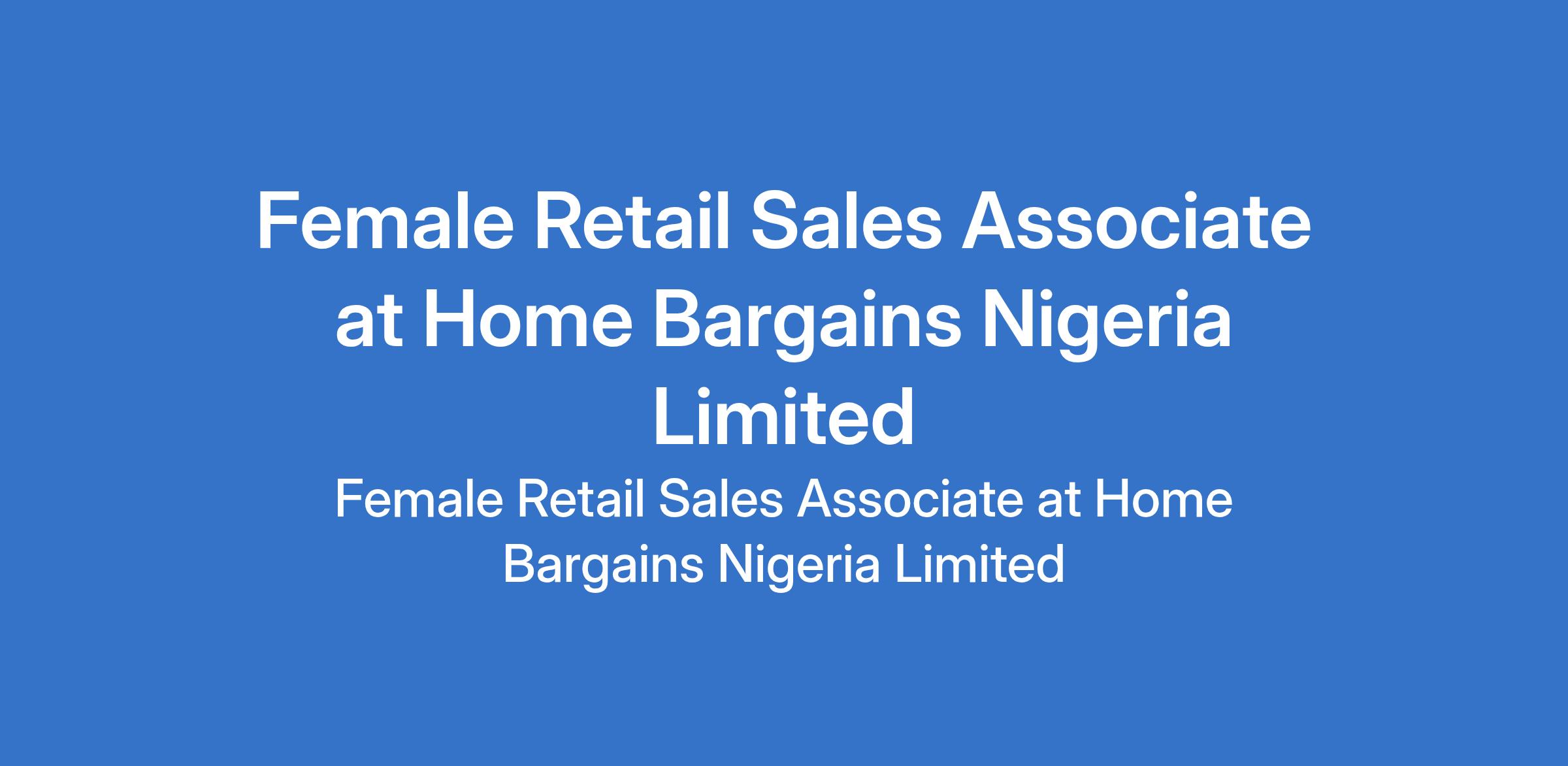 Home Bargains Nigeria Limited is recruiting to fill the position of: Female Retail Sales Associate. The position is located in Wuse Zone 1, Abuja (FCT). Interested candidates should possess an OND, HND, or Bachelor's degree in a relevant field with a minimum of 2 years of retail sales experience, preferably in a gift, dcor, or home store.