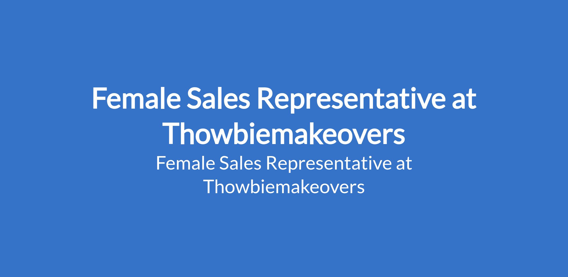 Thowbiemakeovers is recruiting to fill the position of: Female Sales Representative. The position is located in Ojodu Berger, Lagos State. Salary: N120,000 - N140,000 / month. Interested candidates should possess a minimum of an Ordinary Diploma (ND) with 1- 2 years of sales experience and must reside in Ojudu Berger, Ogba, Ikeja, or nearby environs.