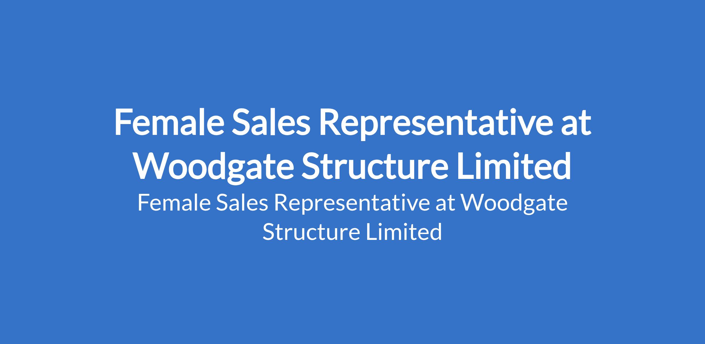 Female Sales Representative at Woodgate Structure Limited
