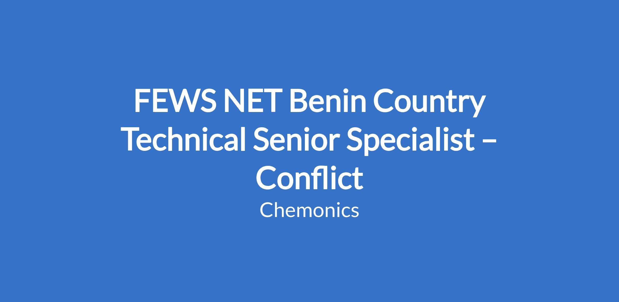 The CTSS-C will be based in Cotonou, Benin and is directly supervised by the Country Technical Lead (CTL), with technical direction provided by the RTSS-C and the Security and Conflict Advisor. For technical activities, the CTSS-C collaborates and coordinates with the in-country and regional technical senior specialists in the region, relevant home office-based food security analysts, and the Security and Conflict Advisor under the guidance of the CTL or their designee. For office administration and financial management, the CTSS-C collaborates with the country-level or regional office administration and finance staff and the relevant Washington D.C.-based Project Management Units, under the direction of the CTL or their designee. The CTSS-C will be required to travel regularly nationally and sub-nationally, and some regional and international travel may also be required, security permitting.
