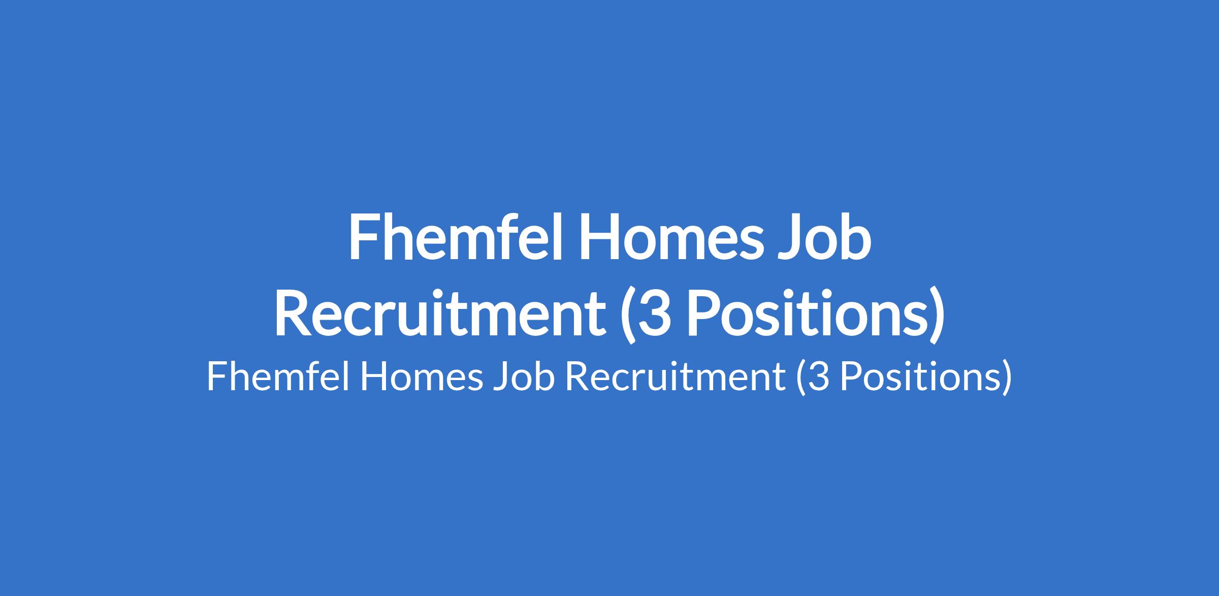 Fhemfel Homes is recruiting suitably qualified candidates to fill the following positions in Abuja: Business Development Manager (Real Estate); Sales Executive; and Accountant.