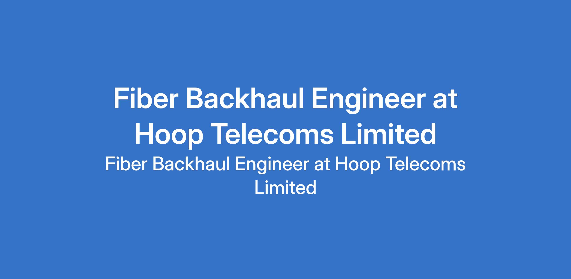 Hoop Telecoms Limited is recruiting to fill the position of: Fiber Backhaul Engineer. The position is located in Ilupeju, Lagos State. Interested candidates should possess a Bachelors Degree in Telecommunications Engineering, Electrical Engineering, or a related discipline with 3 6 years experience in fiber network design and maintenance.