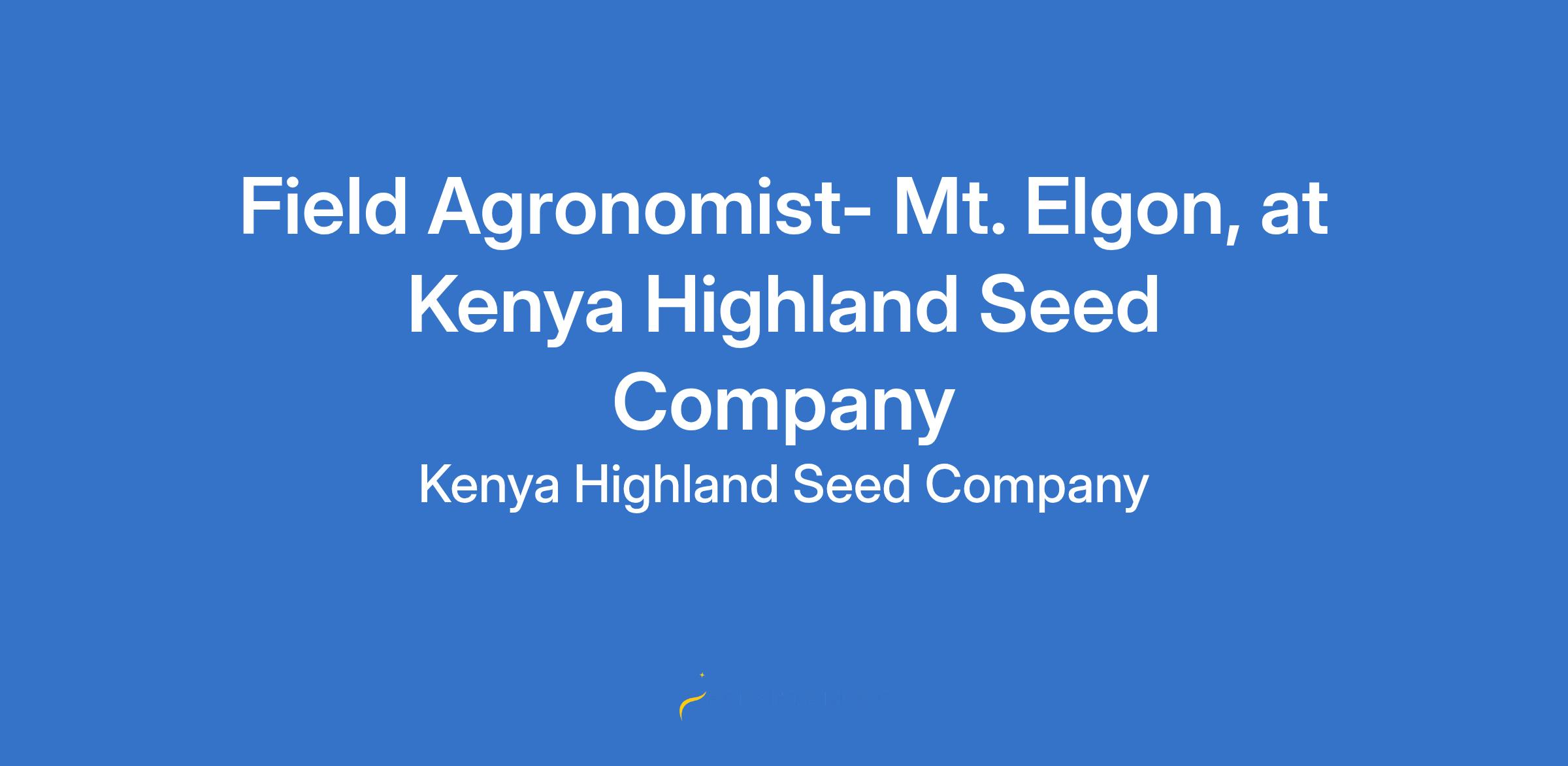 Field Agronomist- Mt. Elgon, at Kenya Highland Seed Company