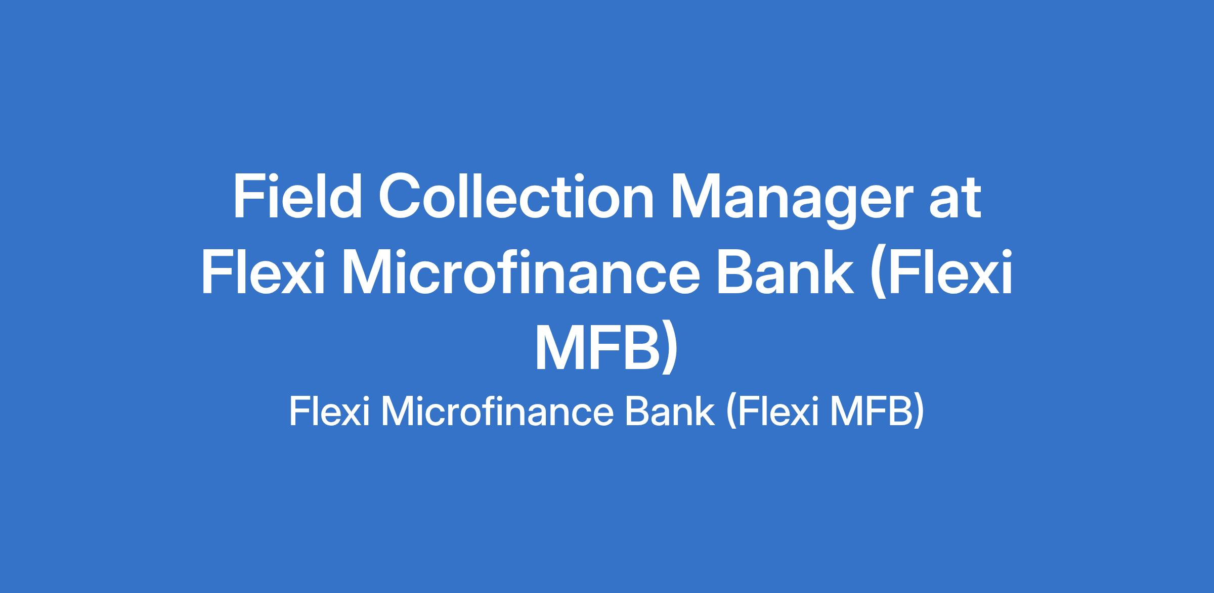 FLEXI MFB is looking for reliable and self-driven Field Collection Manager to support its Customer Finance & Recovery operations.