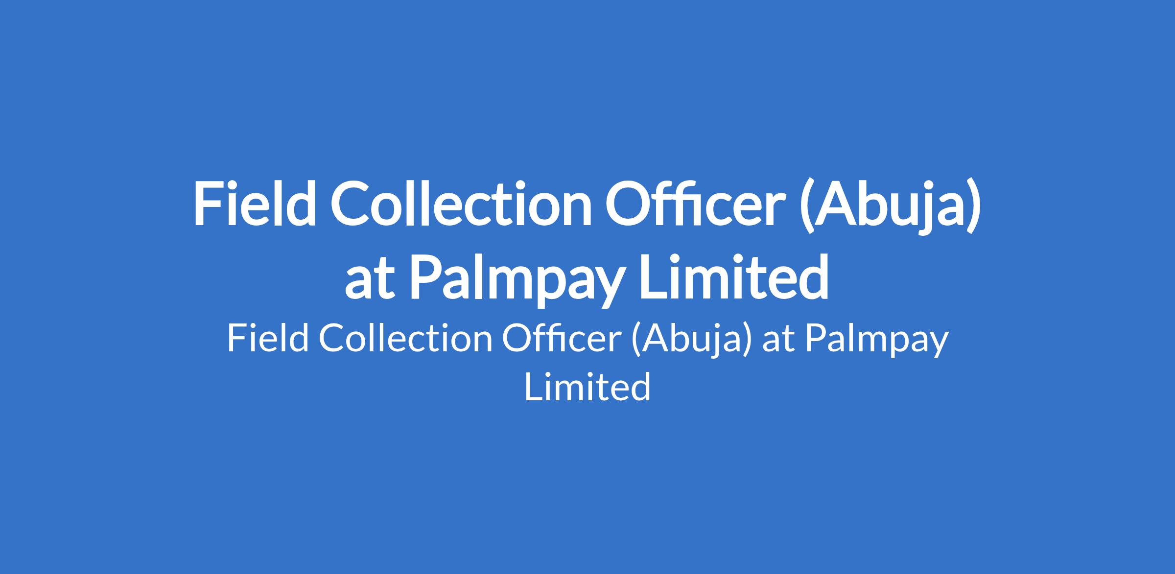 Palmpay Limited is recruiting to fill the position of: Field Collection Officer. The position is located in Municipal Area Council, Abuja (FCT). Salary: N80,000 / Month. Interested candidates should possess relevant qualifications with prior experience in loan collection, field recovery, or related financial services.