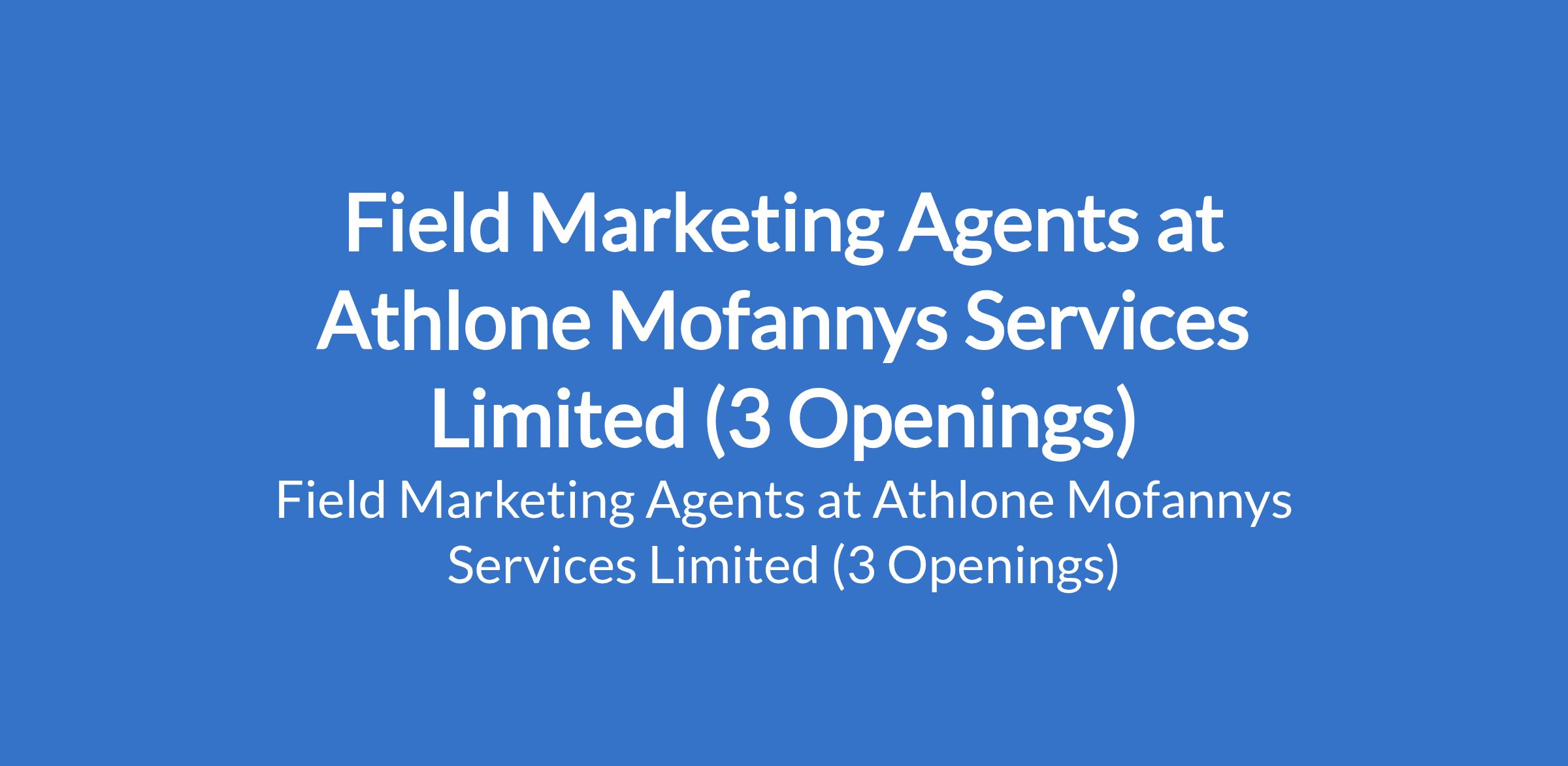 Athlone Mofannys Services Limited, in partnership with a leading Microfinance Bank is recruiting to fill the position of: Field Marketing Agent. The position is located in the Mainland, Island, and Ikorodu / Alimosho, Lagos State. Interested candidates should possess a minimum of an SSCE (O'Level) or OND qualification, must be able to read, write, and accurately type KYC data without spelling errors, with previous experience in field marketing, NGO data collection, census work, or POS onboarding.