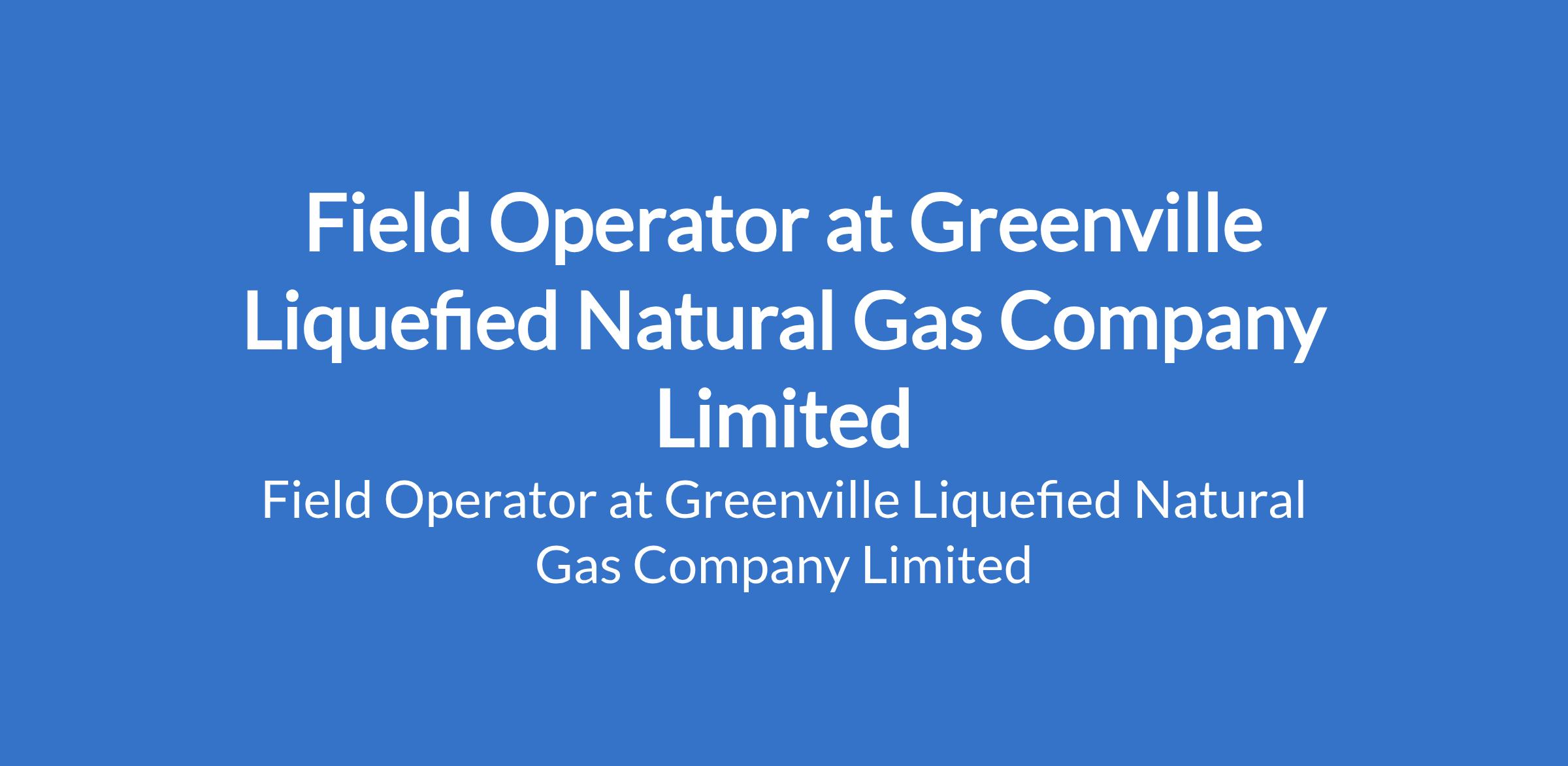 Greenville Liquefied Natural Gas Company Limited is recruiting to fill the position of: Field Operator. The position is located in Port Harcourt, Rivers State. Interested candidates should possess a Bachelor`s Degree / HND qualification in any Engineering discipline with a minimum of three (3) years working experience in process plant operations out of which 2 years must be in Field operation.