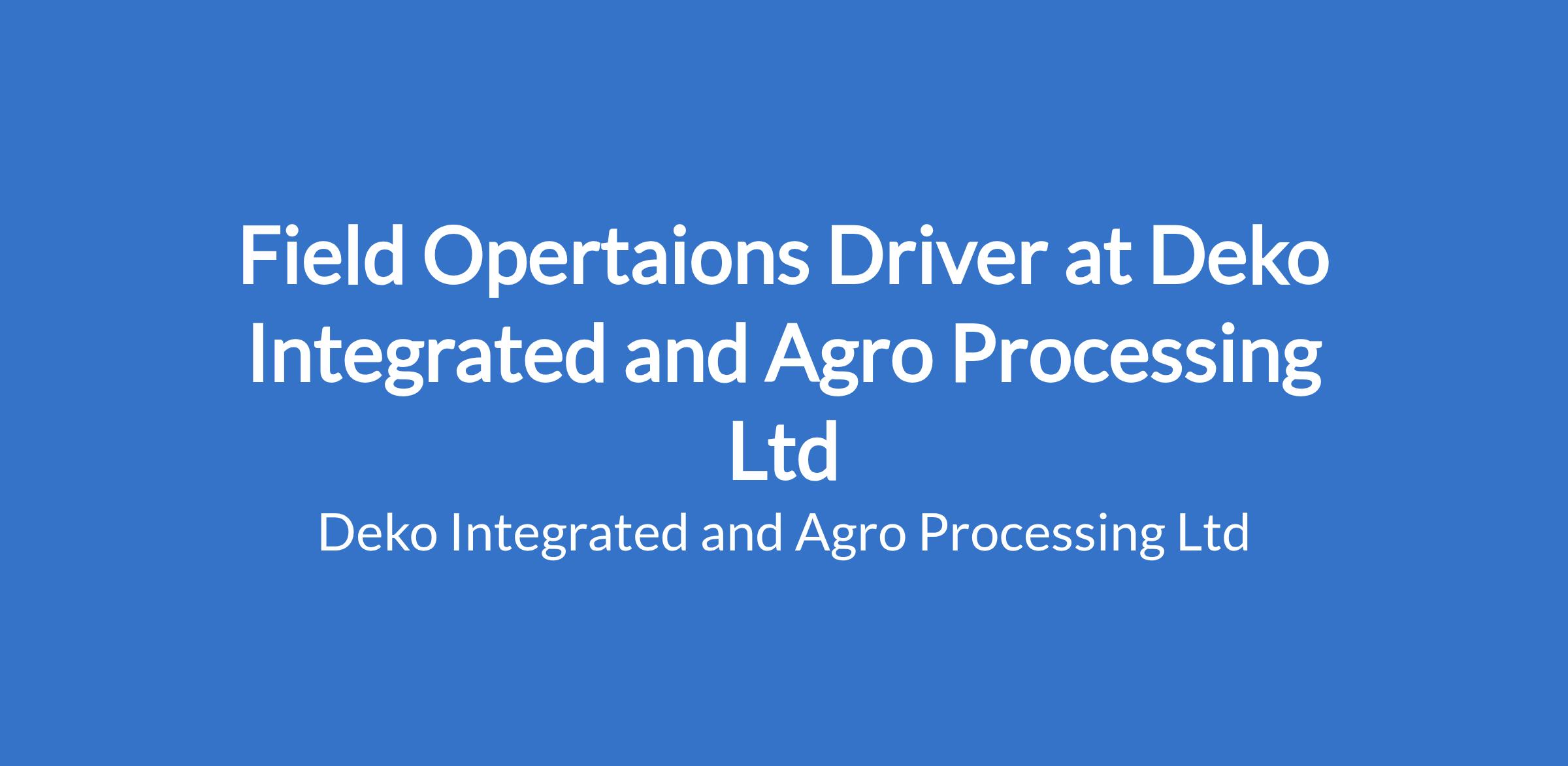 Deko Integrated and Agro Processing Ltd is an equal-opportunity employer committed to fostering a diverse and inclusive workplace.