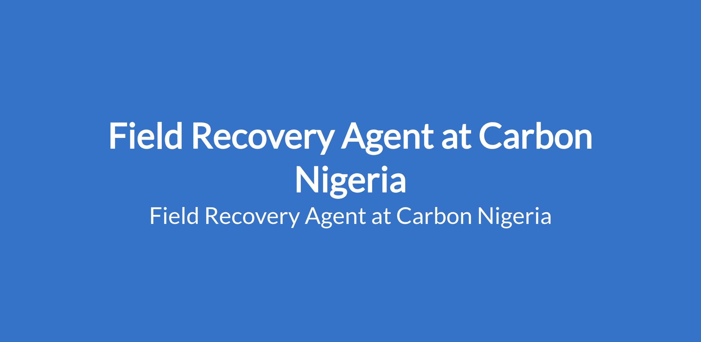 Carbon Nigeria is recruiting to fill the position of: Field Recovery Agent. The position is located in Lagos State. Interested candidates should possess relevant qualifications with previous experience in field collections, loan recovery, sales, or customer engagement is an advantage.