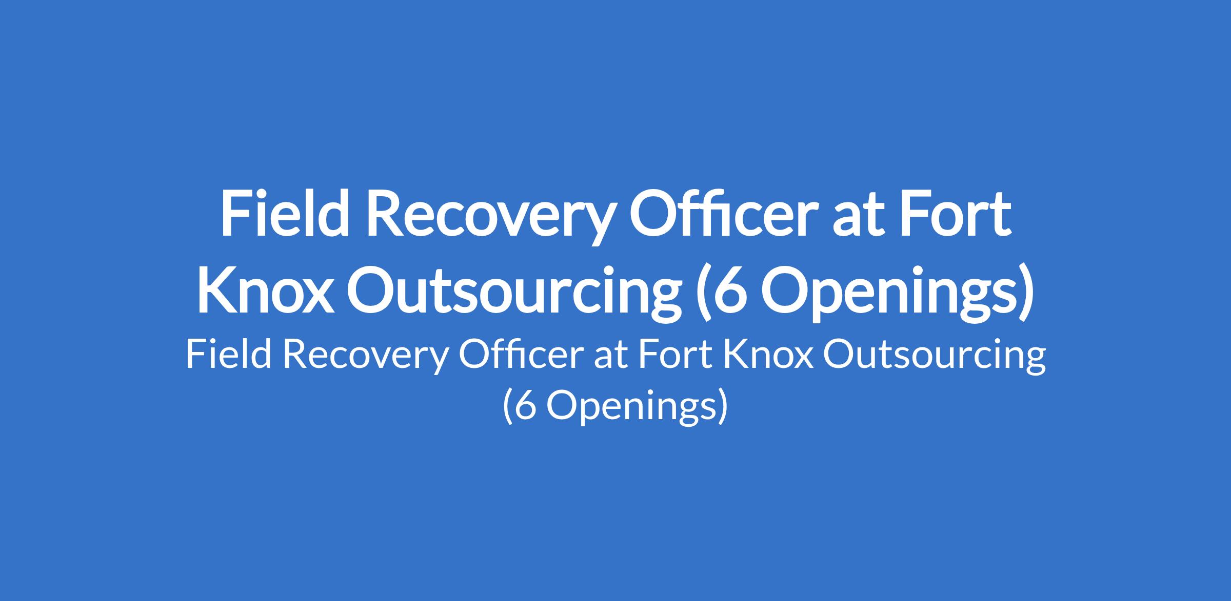 Fort Knox Outsourcing is recruiting to fill the position of: Field Recovery Officer. The position is located in Abuja (FCT), Lagos, Ogun, Ondo, Osun, and Oyo States. Salary: N200,000 - N215,000 per month. Interested candidates should possess a minimum B.Sc / HND / OND qualification with 2 3 years of experience in SME Loan or Merchant Lending.