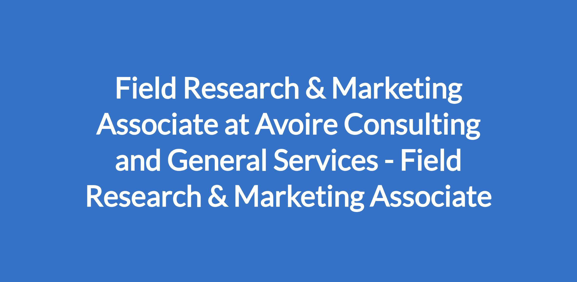 Field Research & Marketing Associate at Avoire Consulting and General Services - Field Research & Marketing Associate
