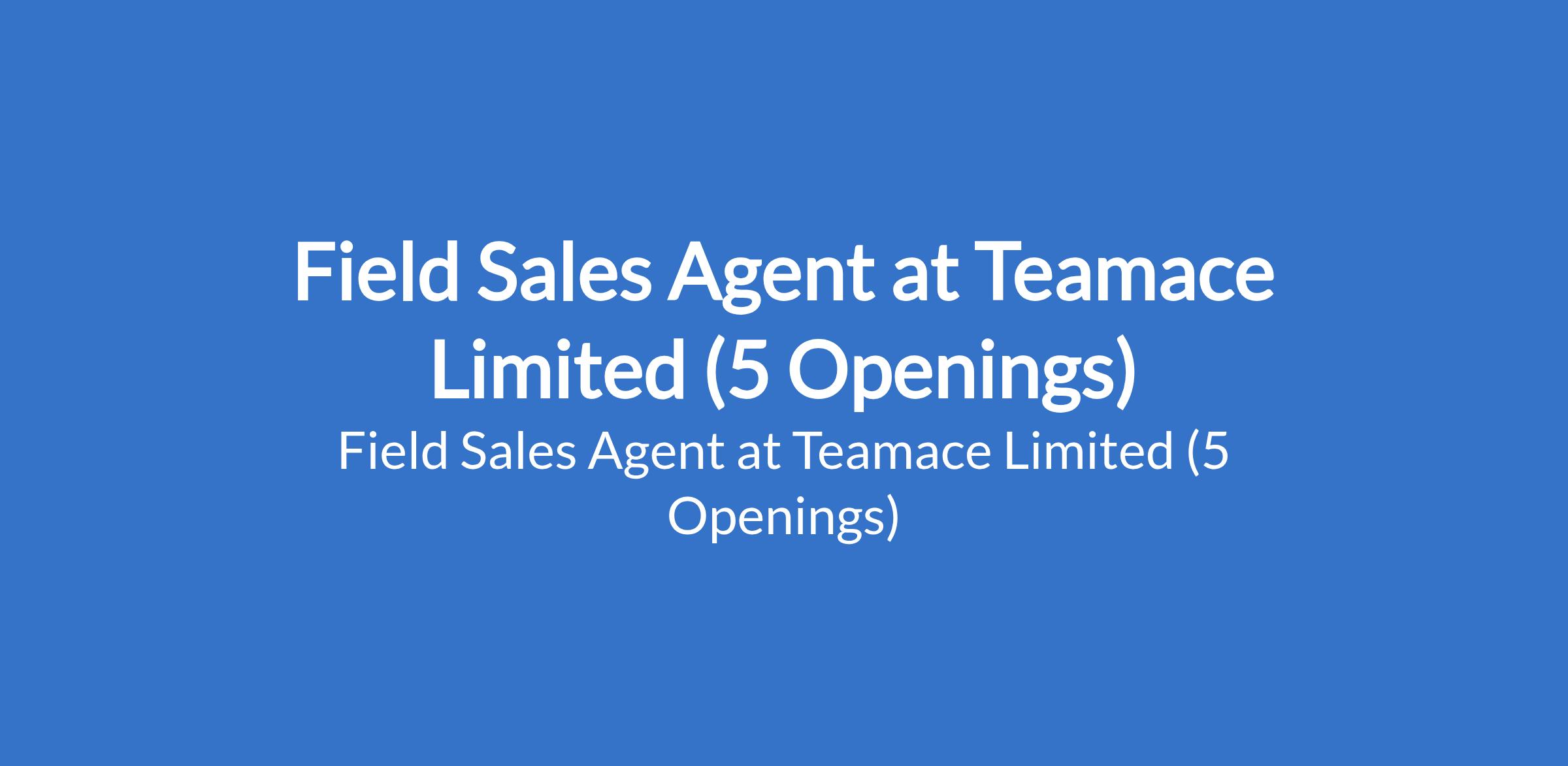 Teamace Limited is recruiting to fill the position of: Field Sales Agent. The position is located in Island / Oshodi / Yaba, Alaba / Arena, Island / Ojo, Tradefair and Alaba - Lagos State. Salary: N130,000 - N150,000 per month. Interested candidates should possess a relevant qualification with 3+ years of strong sales experience in related FMCG or product-based fields.