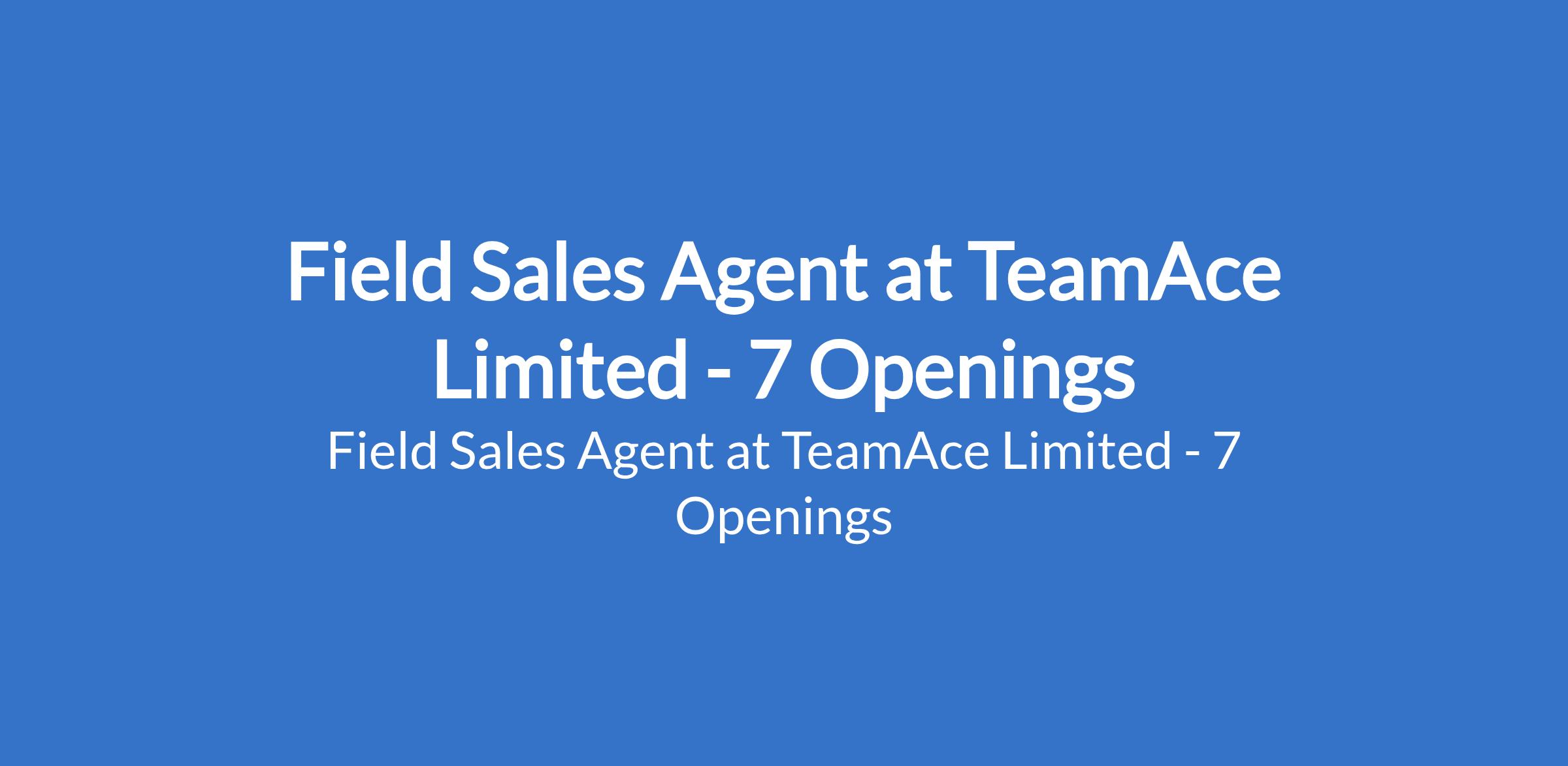 TeamAce Limited is recruiting to fill the position of: Field Sales Agent. The position is located in Island, Oshodi, Yaba, Alaba, Arena, Ojo, and Tradefair, Lagos State. Salary: N150,000 per month. Interested candidates should possess relevant qualifications with a minimum of 3+ years of strong sales experience in related FMCG or product-based fields.