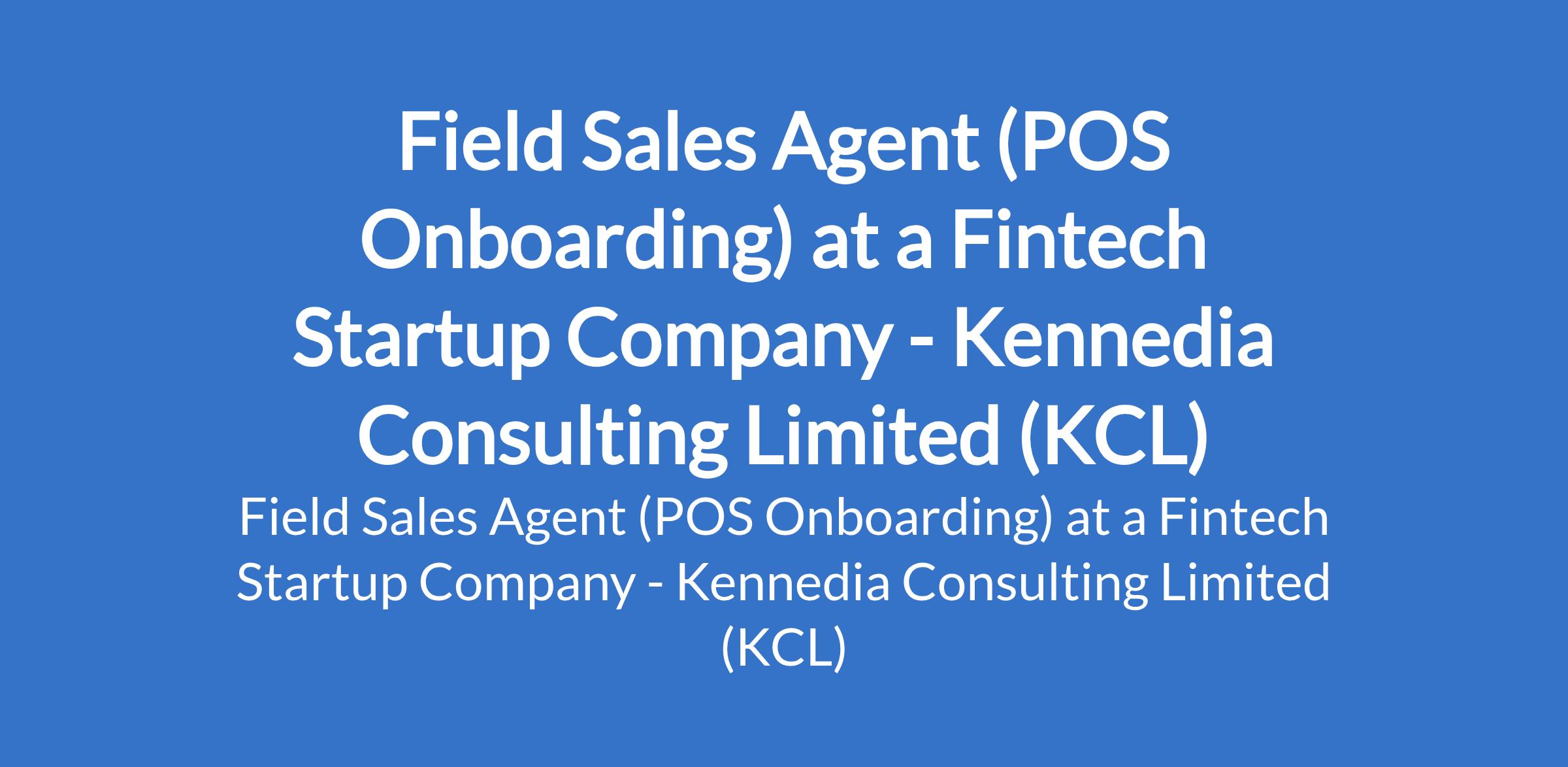 Kennedia Consulting Limited (KCL) - Our client, a fintech startup company, is recruiting to fill the position of: Field Sales Agent (POS Onboarding). The position is located in Victoria Island, Lagos State. Salary: N185,000 monthly. Interested candidates should possess a BSc / HND qualification in any discipline with a minimum of 1 year sales experience.