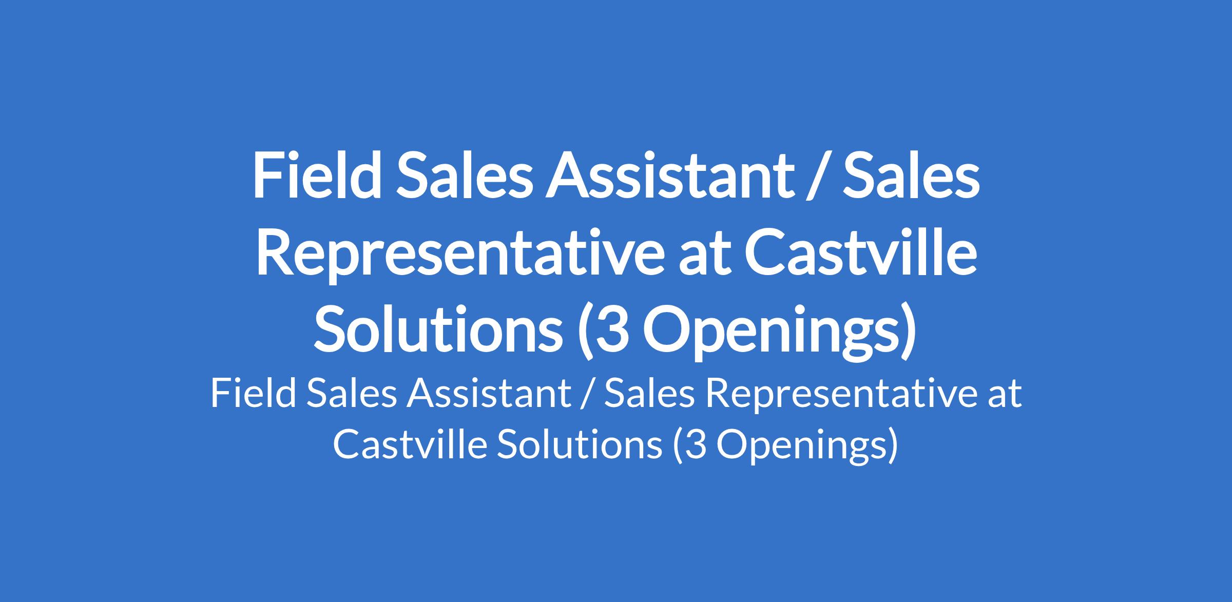 Castville Solutions is recruiting to fill the position of: Field Sales Assistant / Sales Representative. The position is located in Ibadan - Oyo, Lagos, and Owerri - Imo States. Salary: N120,000 monthly. Interested candidates should possess minimum of an SSCE / OND / HND / BSc Degree in any discipline with previous experience in field sales or marketing.