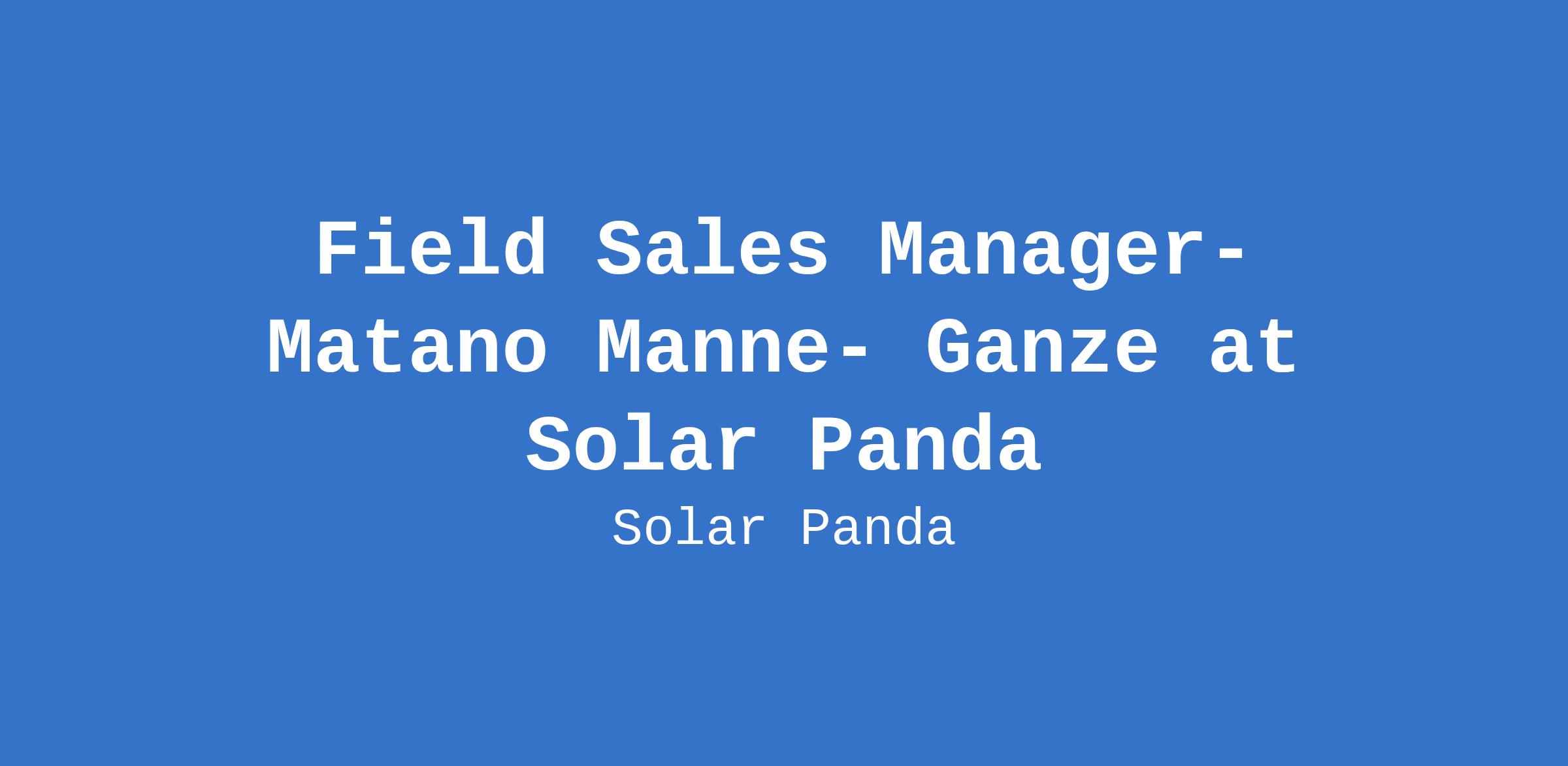 Field Sales Manager- Matano Manne- Ganze at Solar Panda