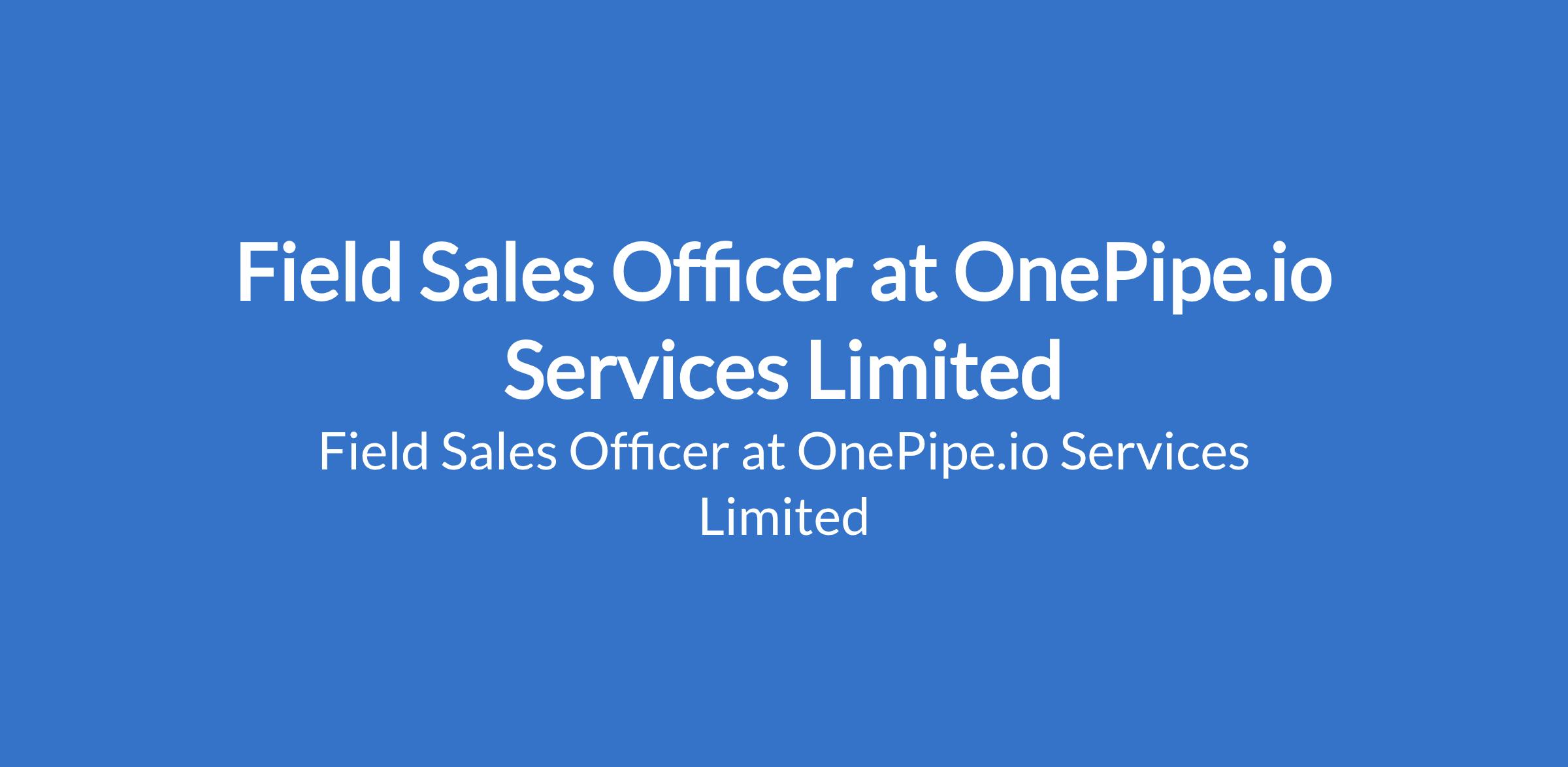 OnePipe.io Services Limited is recruiting to fill the position of: Field Sales Officer. The position is located in Lagos State. Interested candidates should possess relevant qualifications with 3 - 5 years experience in sales, business development, or customer acquisition.