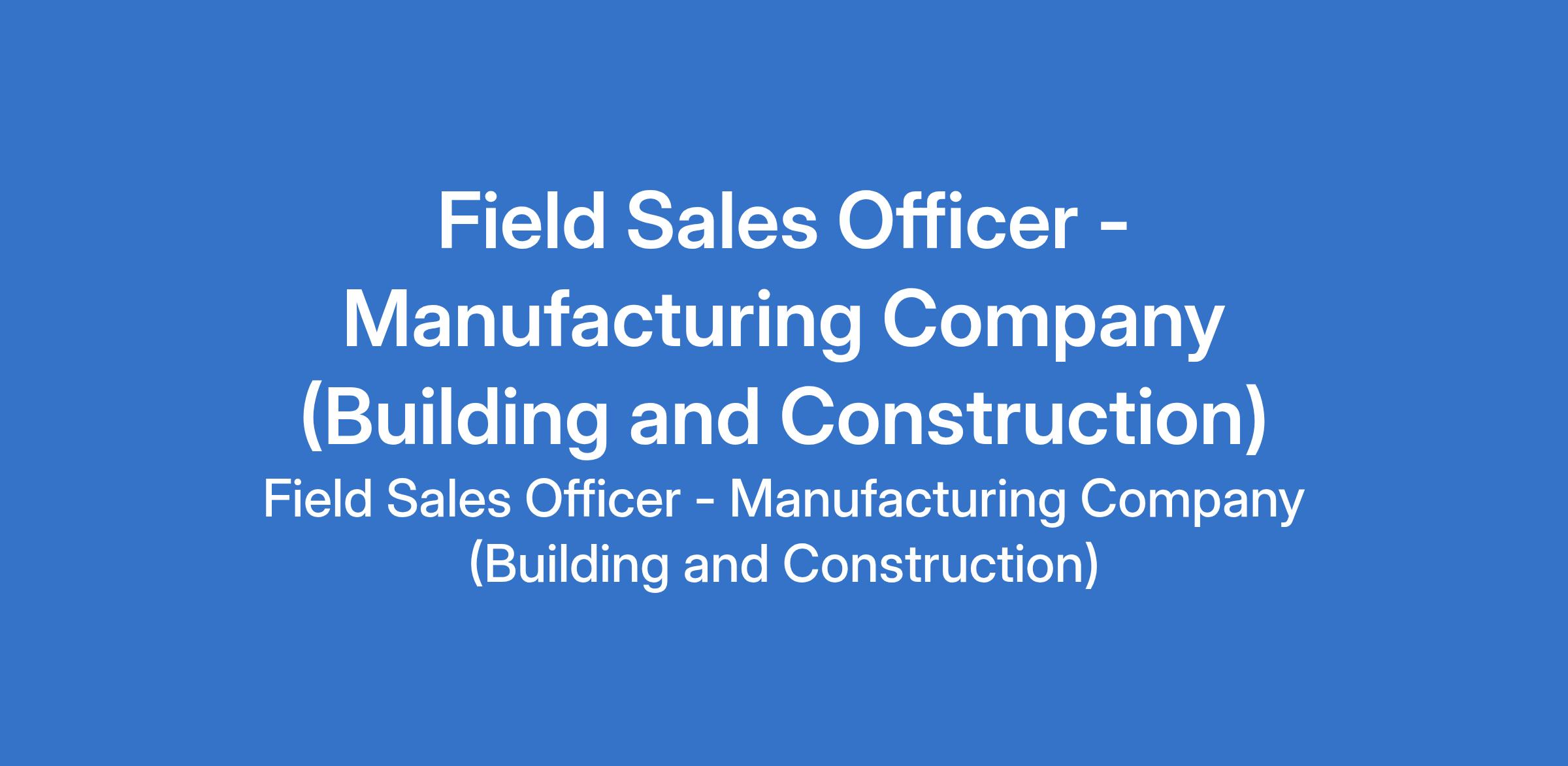 Field Sales Officer - Manufacturing Company (Building and Construction)