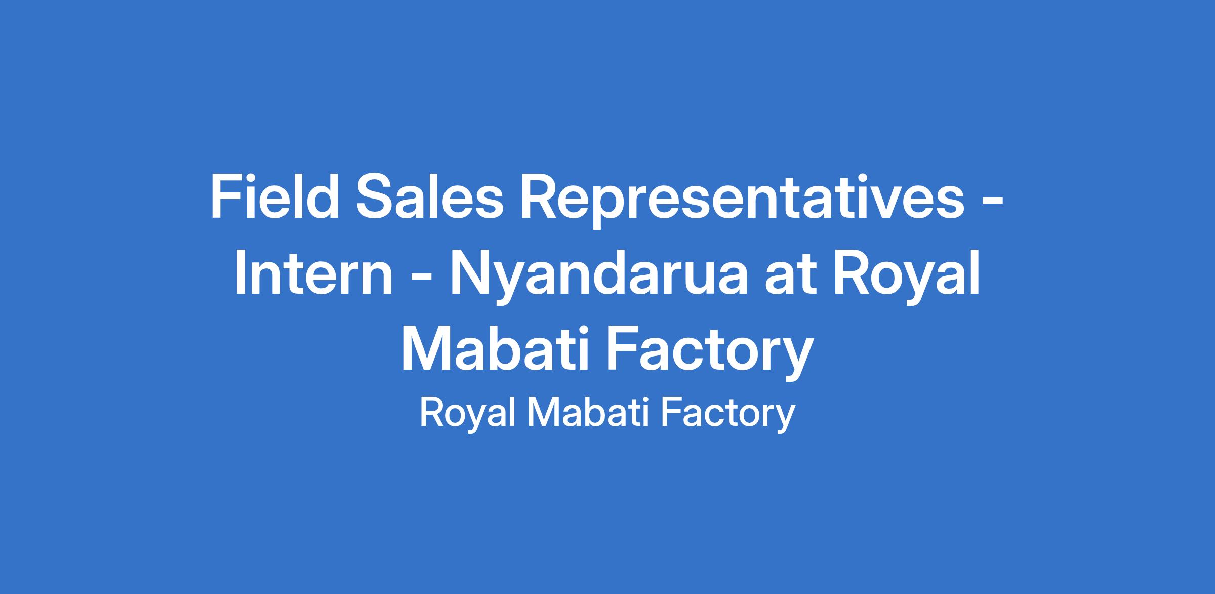 Field Sales Representatives - Intern - Nyandarua at Royal Mabati Factory